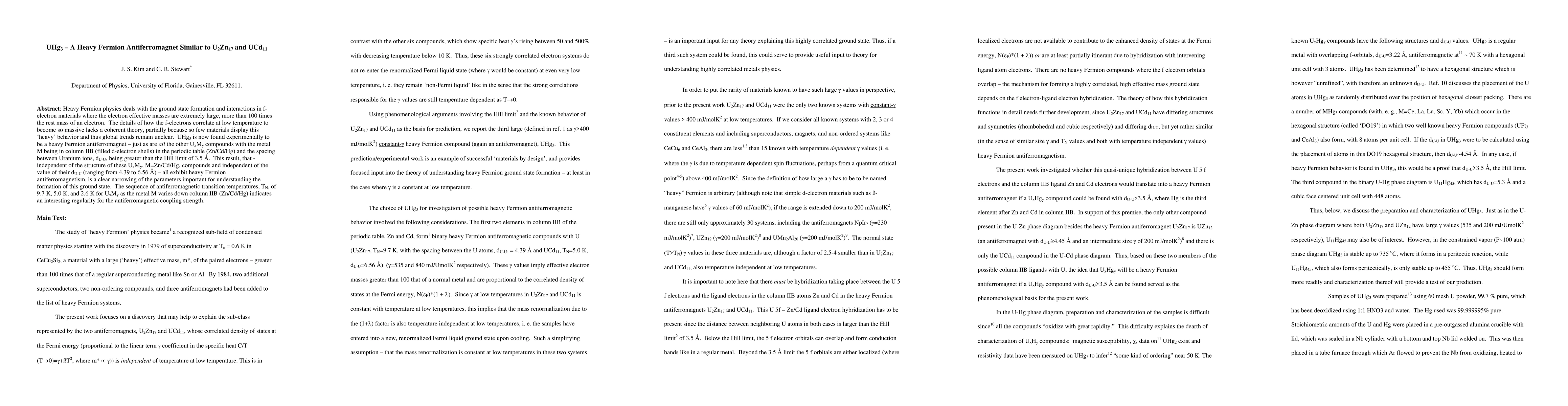 Heavy Fermion physics deals with the ground state formation and interactions in f-electron materials where the electron effective masses are extremely large, more than 100 times the rest mass of an electron. The details of how the f-electrons correlate at low temperature to become so massive lacks a coherent theory, partially because so few materials display this heavy behavior and thus global trends remain unclear. UHg_{3} is now found experimentally to be a heavy Fermion antiferromagnet, just as are all the other U_{x}M_{y} compounds with the metal M being in column II B (filled d electron shells) in the periodic table (Zn/Cd/Hg) and the spacing between Uranium ions being greater than the Hill limit of 3.5 Angstroms. This result that, independent of the structure of these U_{x}M_{y}, M=Zn/Cd/Hg, compounds and independent of the value of their Uranium Uranium spacings (ranging from 4.39 to 6.56 Angstroms), all exhibit heavy Fermion antiferromagnetism, is a clear narrowing of the parameters important for understanding the formation of this ground state. The sequence of antiferromagnetic transition temperatures, T_{Neel}, of 9.7 K, 5.0 K, and 2.6 K for U_{x}M_{y} as the metal M varies down column II B (Zn/Cd/Hg) indicates an interesting regularity for the antiferromagnetic coupling strength.