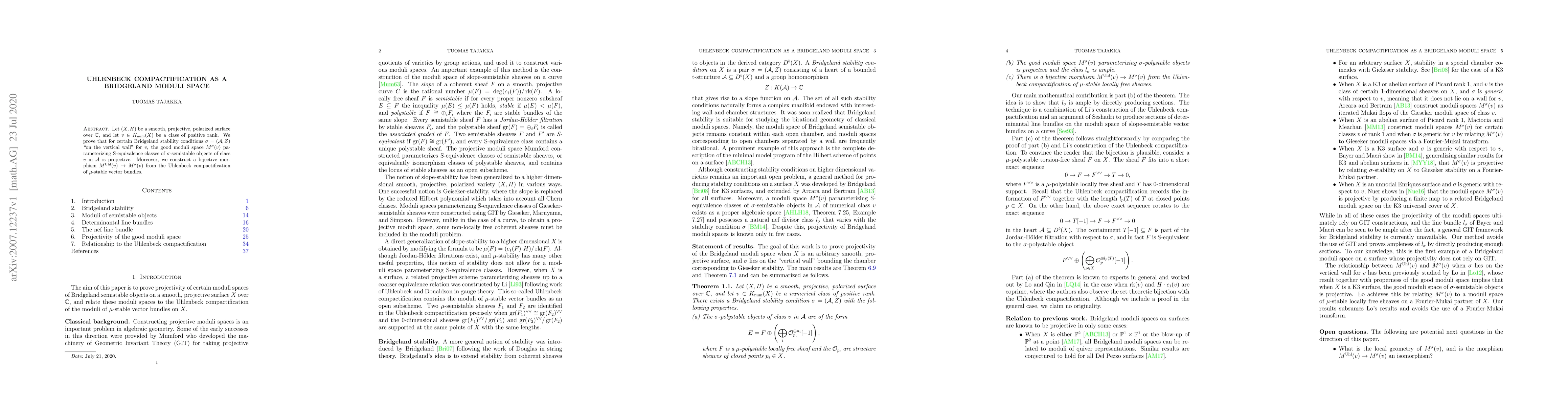 This paper proves that for specific Bridgeland stability conditions on a polarized surface, the moduli space of $\sigma$-semistable objects is projective. It also constructs a bijective morphism between the Uhlenbeck compactification of $\mu$-stable vector bundles and the Bridgeland moduli space.