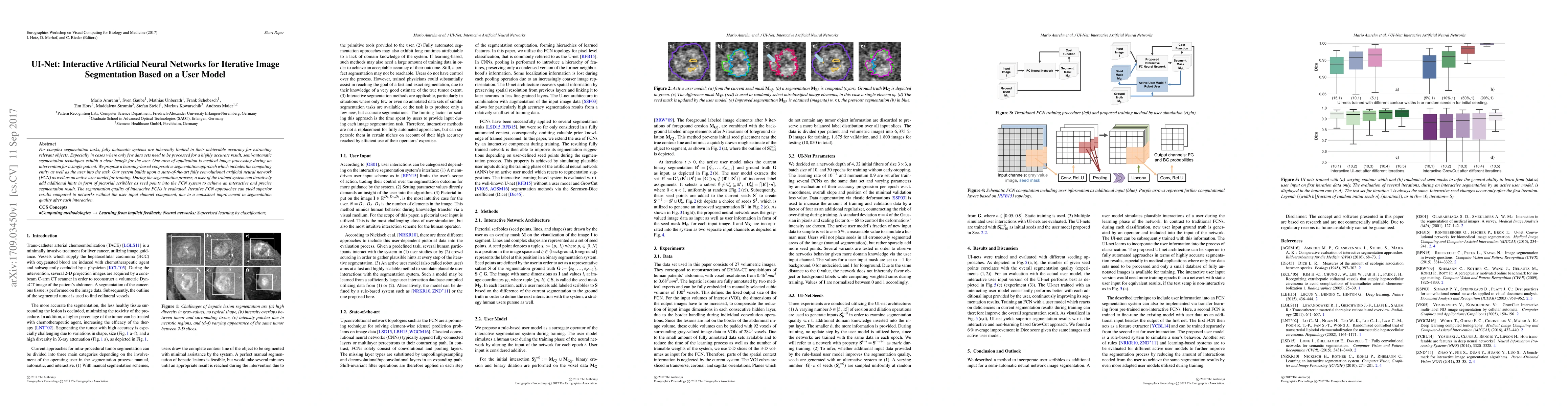 For complex segmentation tasks, fully automatic systems are inherently limited in their achievable accuracy for extracting relevant objects. Especially in cases where only few data sets need to be processed for a highly accurate result, semi-automatic segmentation techniques exhibit a clear benefit for the user. One area of application is medical image processing during an intervention for a single patient. We propose a learning-based cooperative segmentation approach which includes the computing entity as well as the user into the task. Our system builds upon a state-of-the-art fully convolutional artificial neural network (FCN) as well as an active user model for training. During the segmentation process, a user of the trained system can iteratively add additional hints in form of pictorial scribbles as seed points into the FCN system to achieve an interactive and precise segmentation result. The segmentation quality of interactive FCNs is evaluated. Iterative FCN approaches can yield superior results compared to networks without the user input channel component, due to a consistent improvement in segmentation quality after each interaction.