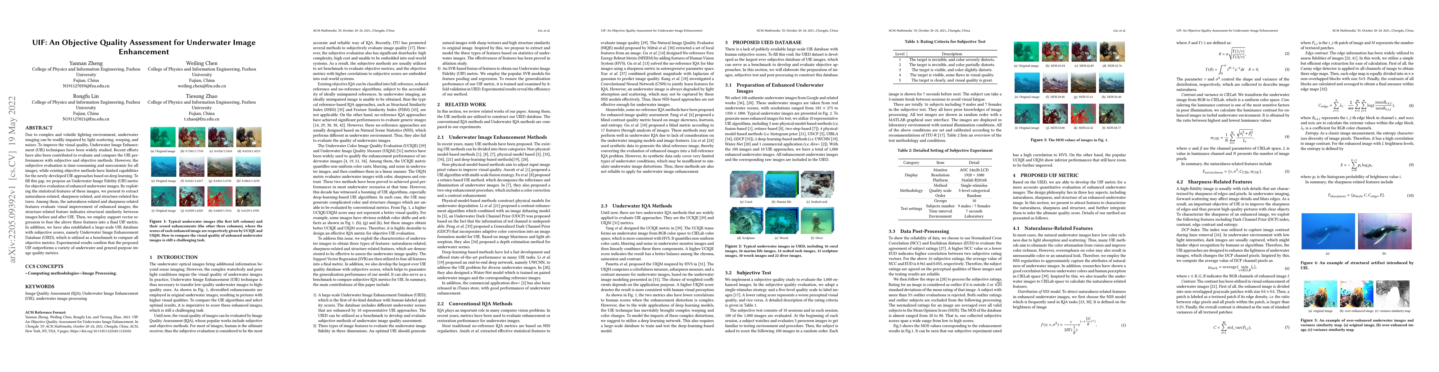 The paper proposes a new Underwater Image Fidelity (UIF) metric for objectively assessing enhanced underwater images, addressing the limitations of existing methods. The UIF metric combines naturalness, sharpness, and structural features, and it outperforms other metrics in evaluations using a newly established UIE database.