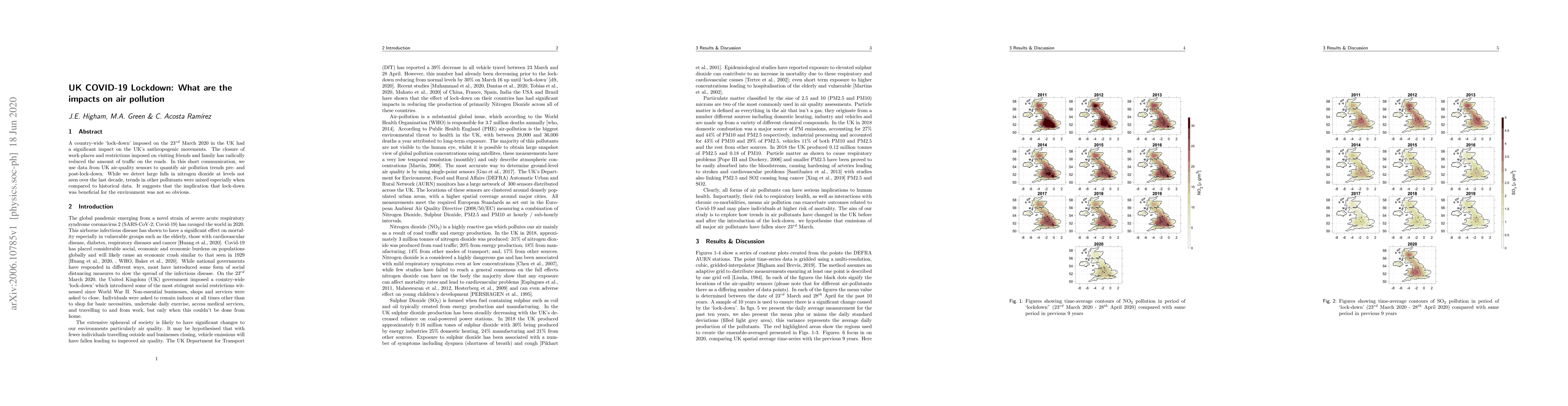 A country-wide `lock-down' imposed on the 23red March 2020 in the UK had a significant impact on the UK's anthropogenic movements. The closure of work-places and restrictions imposed on visiting friends and family has radically reduced the amount of traffic on the roads. In this short communication, we use data from UK air-quality sensors to quantify air pollution trends pre- and post-lock-down. While we detect large falls in nitrogen dioxide at levels not seen over the last decade, trends in other pollutants were mixed especially when compared to historical data. It suggests that the implication that lock-down was beneficial for the environment was not so obvious.