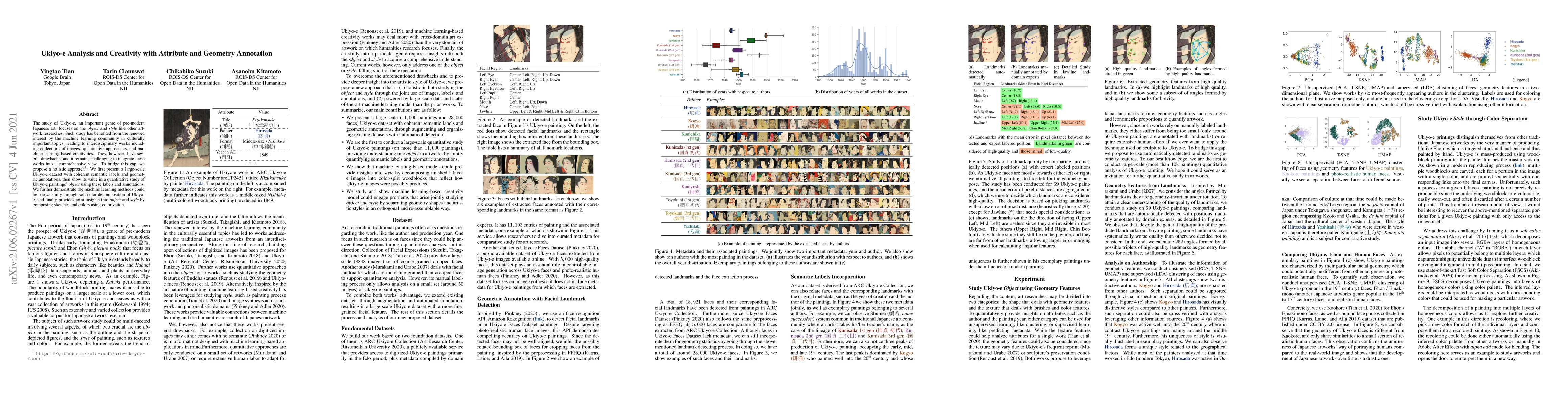 This paper introduces a large-scale Ukiyo-e dataset with semantic labels and geometric annotations, aiming to bridge gaps in interdisciplinary studies. It demonstrates the dataset's utility in quantitative analysis and machine learning-based creativity, including soft color decomposition and colorization for style study.