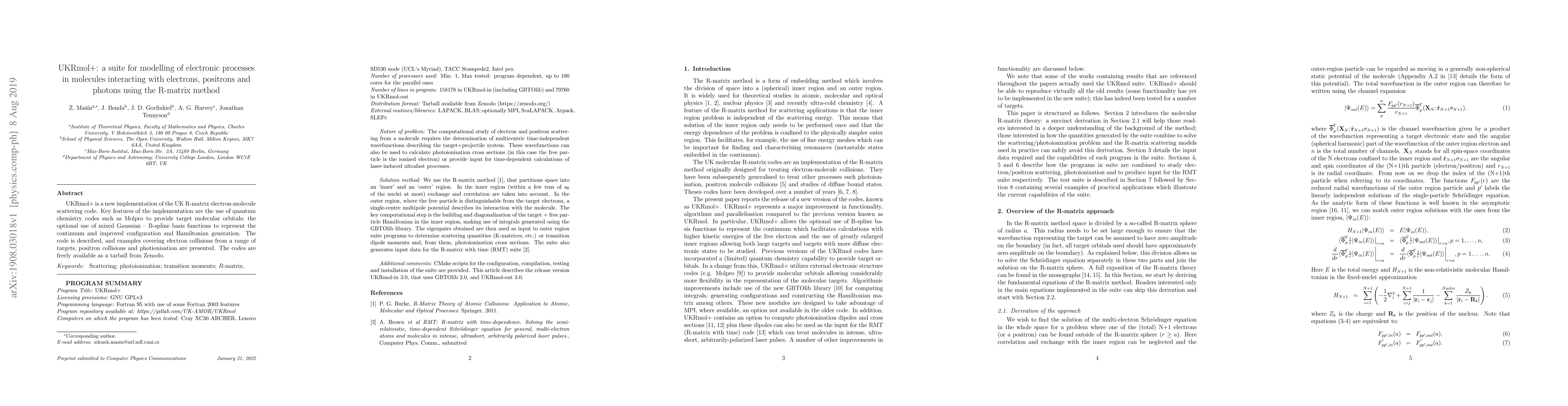 UKRmol+ is a new implementation of the UK R-matrix electron-molecule scattering code. Key features of the implementation are the use of quantum chemistry codes such as Molpro to provide target molecular orbitals; the optional use of mixed Gaussian -- B-spline basis functions to represent the continuum and improved configuration and Hamiltonian generation. The code is described, and examples covering electron collisions from a range of targets, positron collisions and photionisation are presented. The codes are freely available as a tarball from Zenodo.