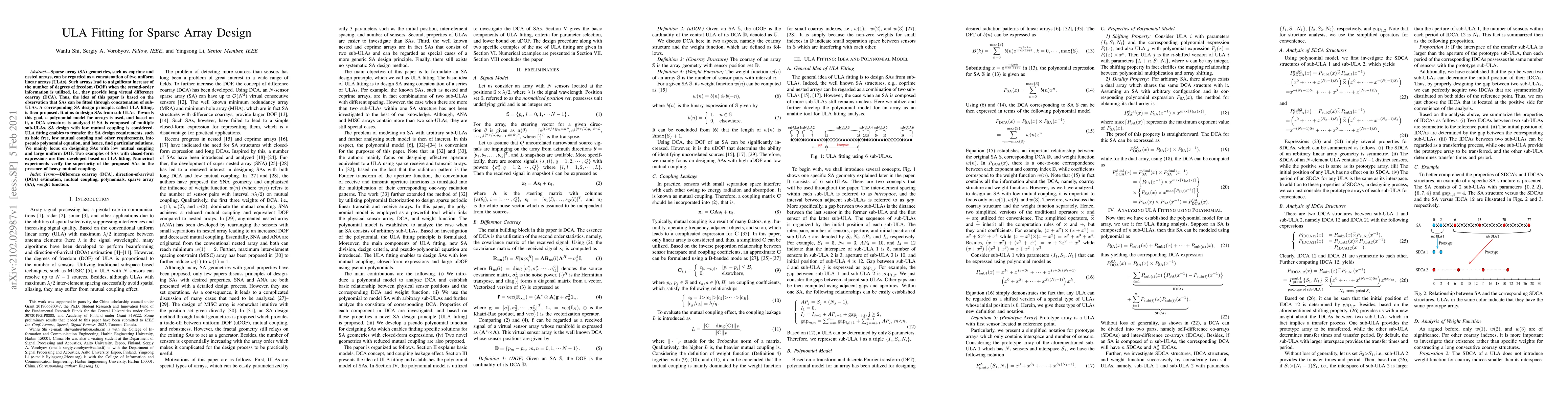 Sparse array (SA) geometries, such as coprime and nested arrays, can be regarded as a concatenation of two uniform linear arrays (ULAs). Such arrays lead to a significant increase of the number of degrees of freedom (DOF) when the second-order information is utilized, i.e., they provide long virtual difference coarray (DCA). Thus, the idea of this paper is based on the observation that SAs can be fitted through concatenation of sub-ULAs. A corresponding SA design principle, called ULA fitting, is then proposed. It aims to design SAs from sub-ULAs. Towards this goal, a polynomial model for arrays is used, and based on it, a DCA structure is analyzed if SA is composed of multiple sub-ULAs. SA design with low mutual coupling is considered. ULA fitting enables to transfer the SA design requirements, such as hole free, low mutual coupling and other requirements, into pseudo polynomial equation, and hence, find particular solutions. We mainly focus on designing SAs with low mutual coupling and large uniform DOF. Two examples of SAs with closed-form expressions are then developed based on ULA fitting. Numerical experiments verify the superiority of the proposed SAs in the presence of heavy mutual coupling.
