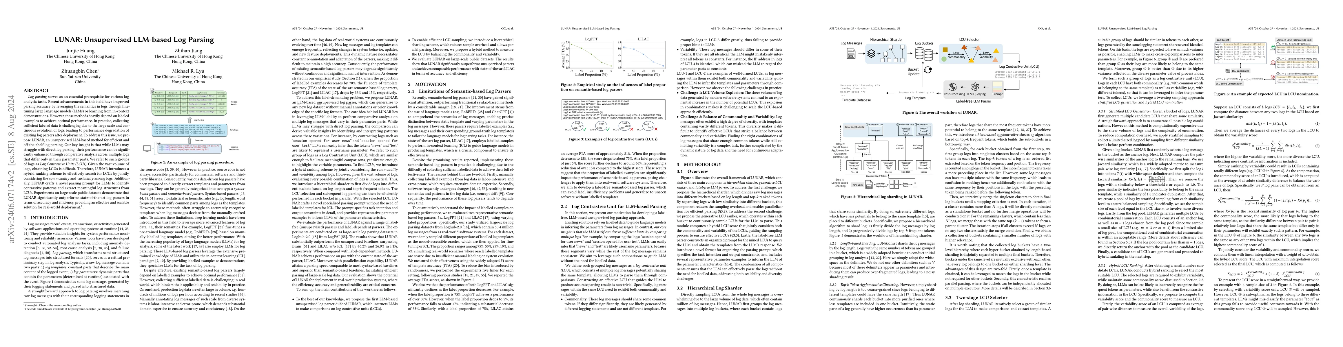 ULog proposes an unsupervised method for log parsing using large language models, leveraging comparative analysis across Log Contrastive Units (LCUs) to enhance parsing accuracy without relying on labeled data. This approach achieves superior performance compared to state-of-the-art methods, demonstrating scalability and efficiency for real-world deployment.