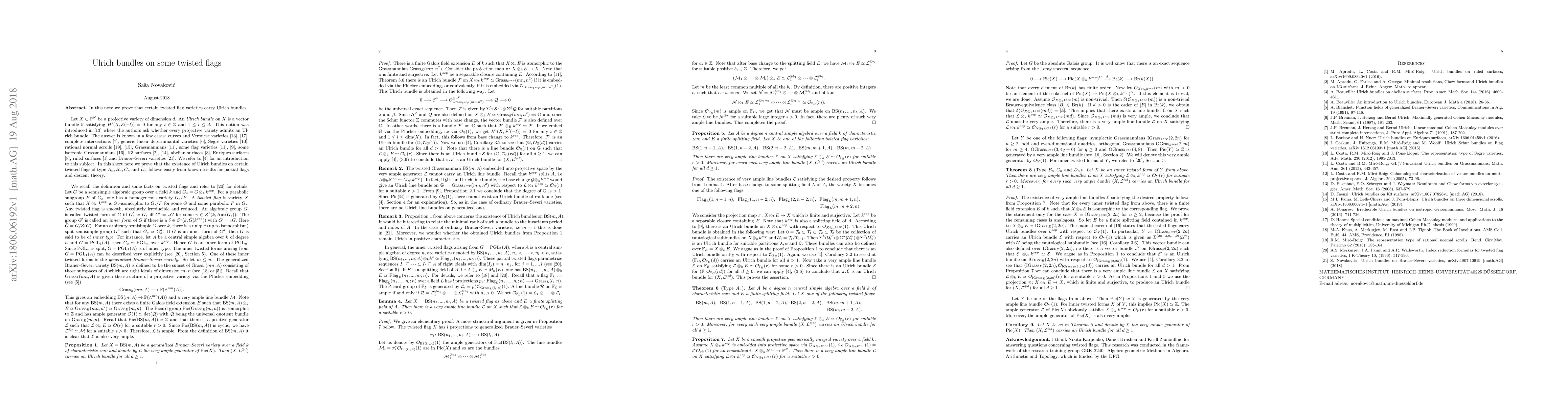 Summary: This research demonstrates the existence of Ulrich bundles on specific twisted flag varieties, contributing to the understanding of vector bundles on these algebraic structures. The study confirms that such bundles, which satisfy particular numerical conditions, can be found in these geometric contexts.