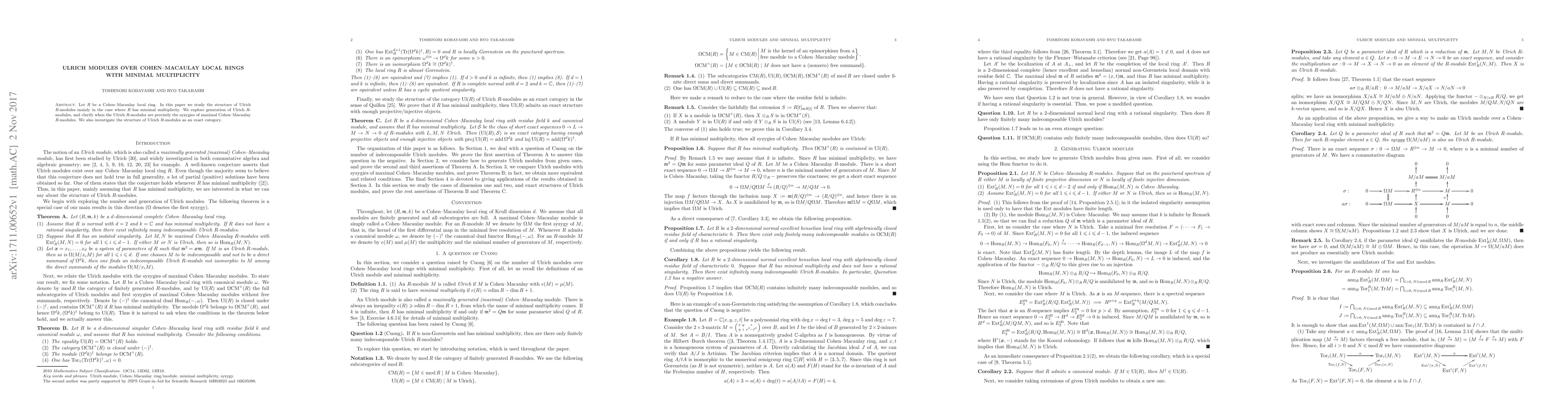 This paper investigates Ulrich modules over Cohen-Macaulay local rings, particularly focusing on those with minimal multiplicity. It explores their generation and relationship with syzygies of maximal Cohen-Macaulay modules, as well as their structural properties within the exact category framework.
