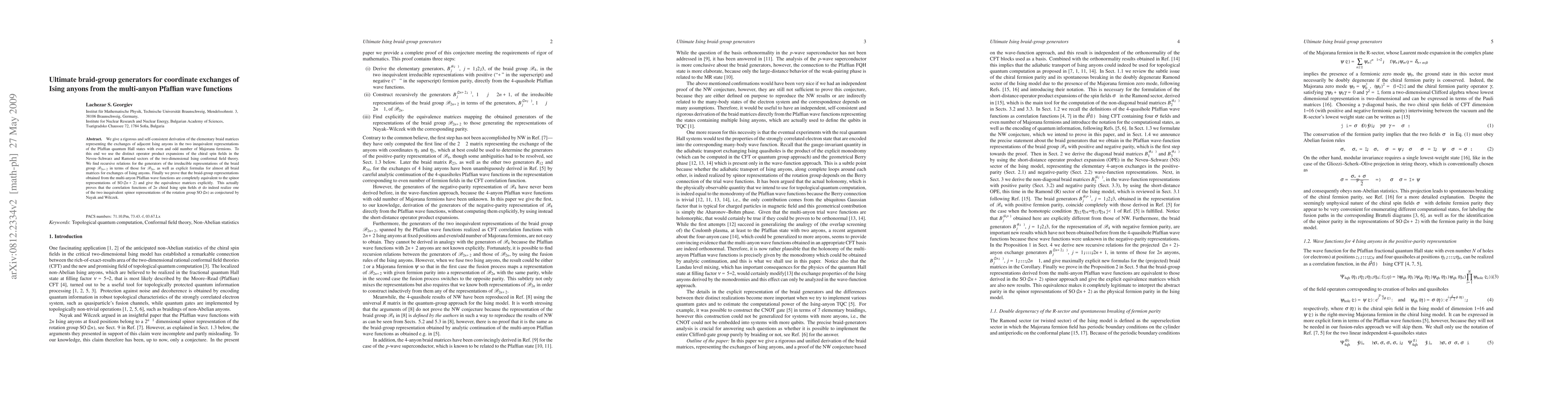 Researchers derive a rigorous method for creating braid-group generators for exchanging Ising anyons using the Pfaffian wave functions, establishing equivalence to spinor representations of SO(2n+2) and realizing a conjectured spinor representation of SO(2n).