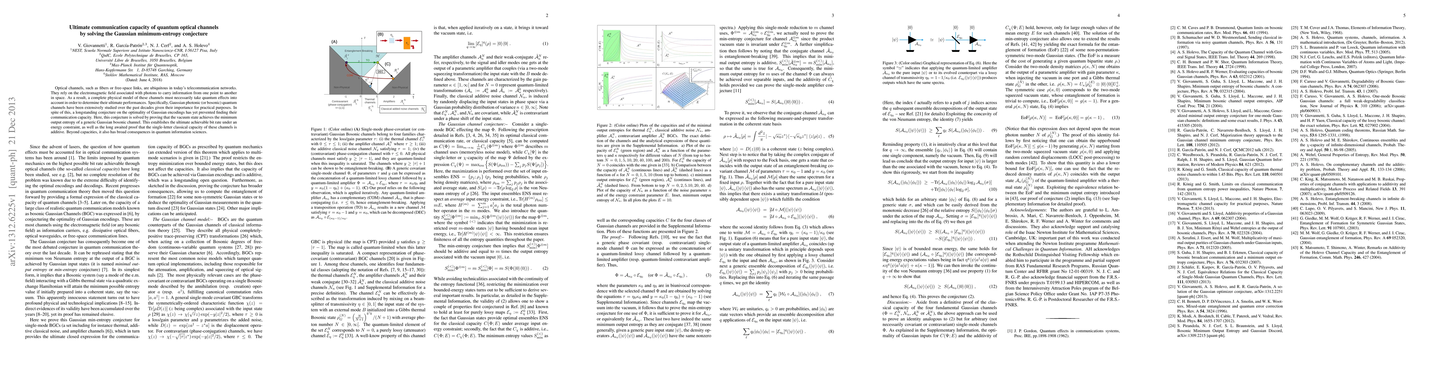 This paper resolves the Gaussian minimum-entropy conjecture, proving that the vacuum state minimizes the output entropy of Gaussian bosonic channels, thereby determining their ultimate communication capacity under energy constraints. This breakthrough establishes the classical capacity of these channels as additive and has significant implications for quantum information science.