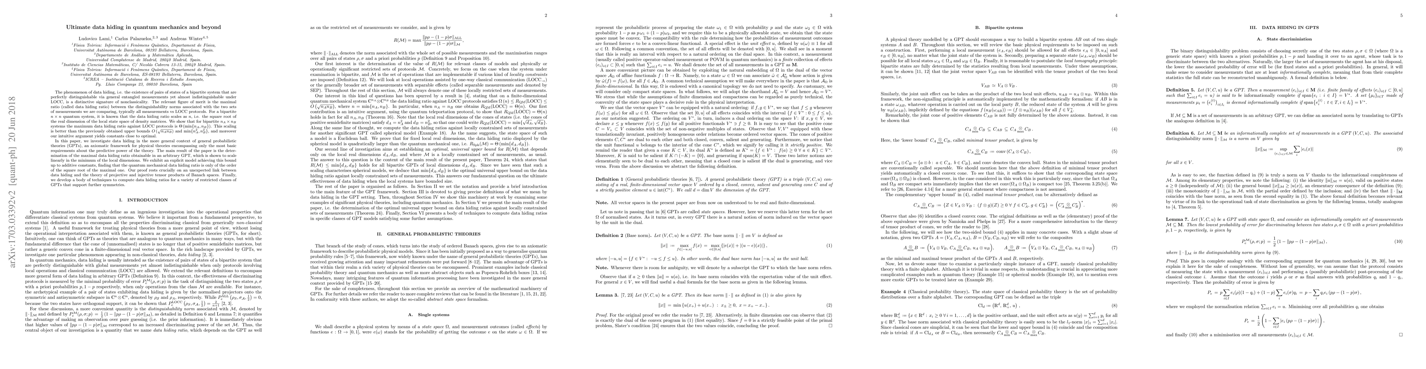 Researchers found that data hiding in quantum mechanics has a maximal ratio scaling linearly with the minimum of local state dimensions, improving previous upper bounds.
