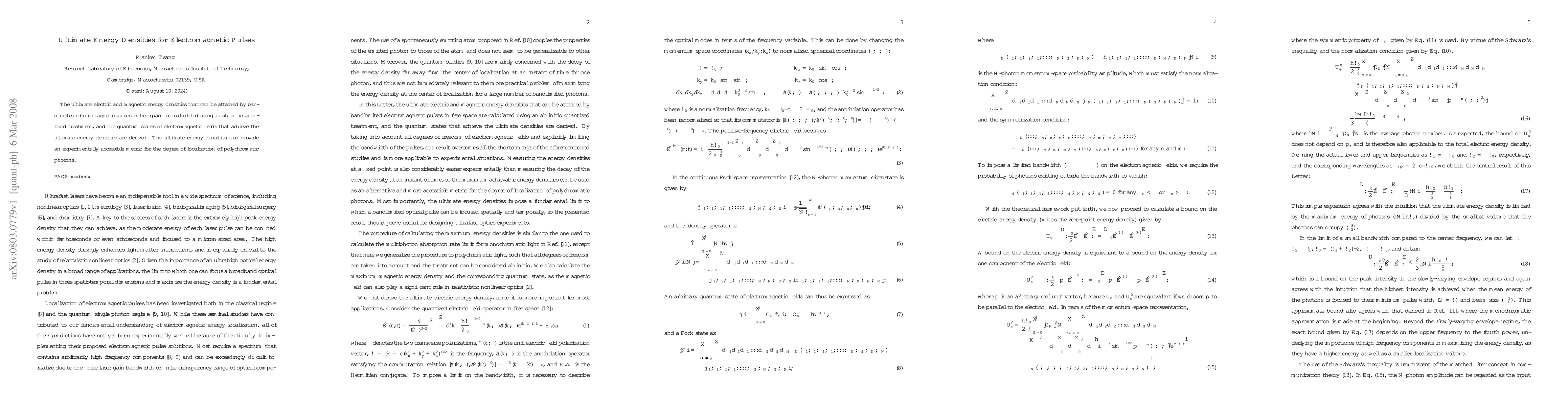 The ultimate electric and magnetic energy densities that can be attained by bandlimited electromagnetic pulses in free space are calculated using an ab initio quantized treatment, and the quantum states of electromagnetic fields that achieve the ultimate energy densities are derived. The ultimate energy densities also provide an experimentally accessible metric for the degree of localization of polychromatic photons.