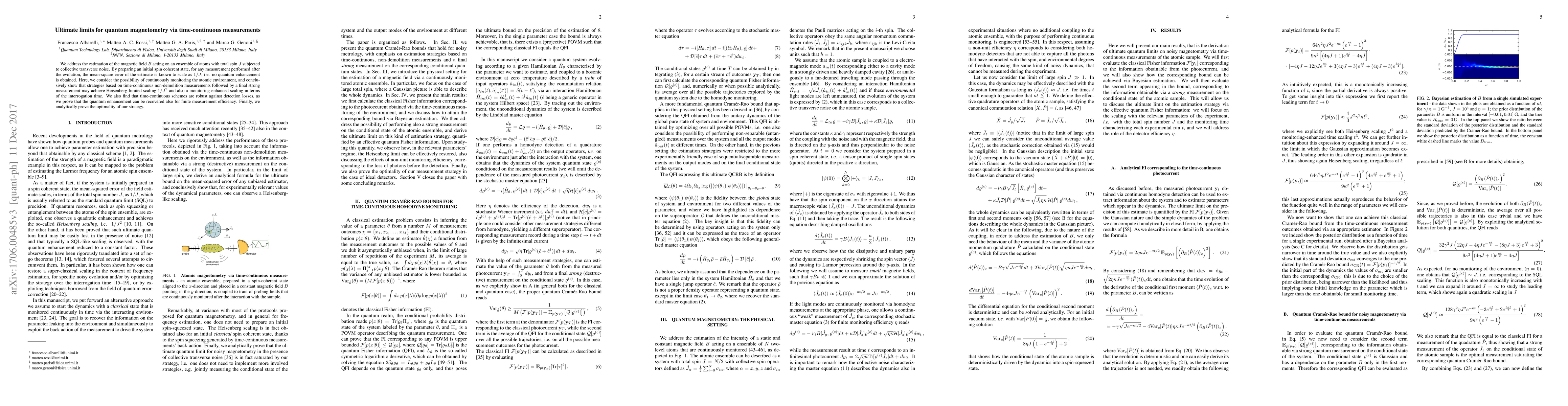 Researchers find that time-continuous measurements can achieve quantum magnetometry limits of $1/{J^2}$ and monitoring-enhanced scaling in terms of interrogation time, surpassing the no-quantum-enhancement limit for spin J.