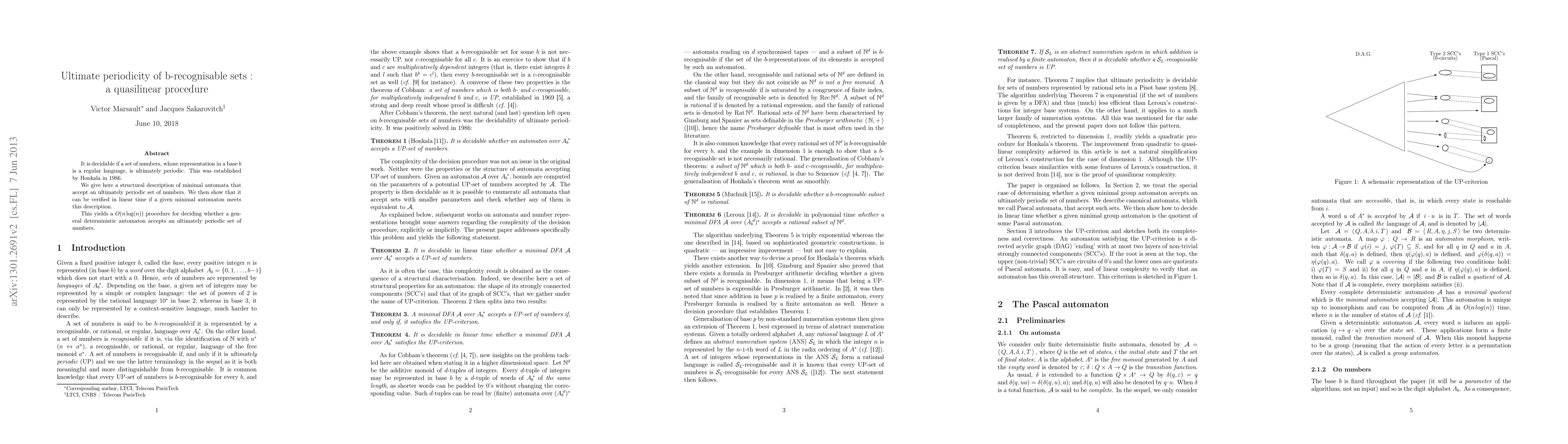 It is decidable if a set of numbers, whose representation in a base b is a regular language, is ultimately periodic. This was established by Honkala in 1986. We give here a structural description of minimal automata that accept an ultimately periodic set of numbers. We then show that it can verified in linear time if a given minimal automaton meets this description. This thus yields a O(n log(n)) procedure for deciding whether a general deterministic automaton accepts an ultimately periodic set of numbers.