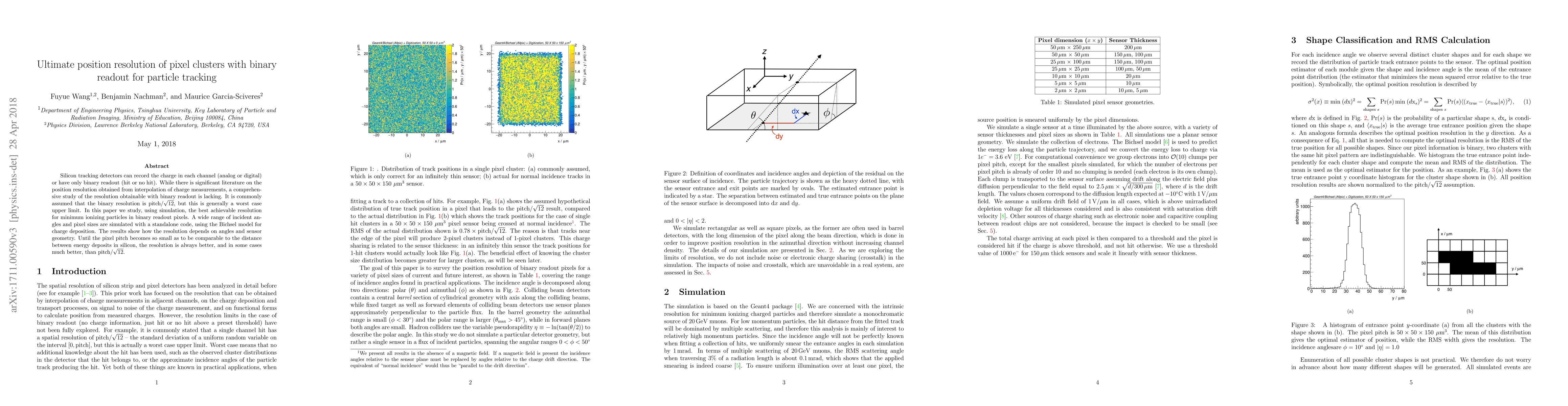 Silicon tracking detectors can record the charge in each channel (analog or digitized) or have only binary readout (hit or no hit). While there is significant literature on the position resolution obtained from interpolation of charge measurements, a comprehensive study of the resolution obtainable with binary readout is lacking. It is commonly assumed that the binary resolution is $\text{pitch}/\sqrt{12}$, but this is generally a worst case upper limit. In this paper we study, using simulation, the best achievable resolution for minimum ionizing particles in binary readout pixels. A wide range of incident angles and pixel sizes are simulated with a standalone code, using the Bichsel model for charge deposition. The results show how the resolution depends on angles and sensor geometry. Until the pixel pitch becomes so small as to be comparable to the distance between energy deposits in silicon, the resolution is always better, and in some cases much better, than $\text{pitch}/\sqrt{12}$.