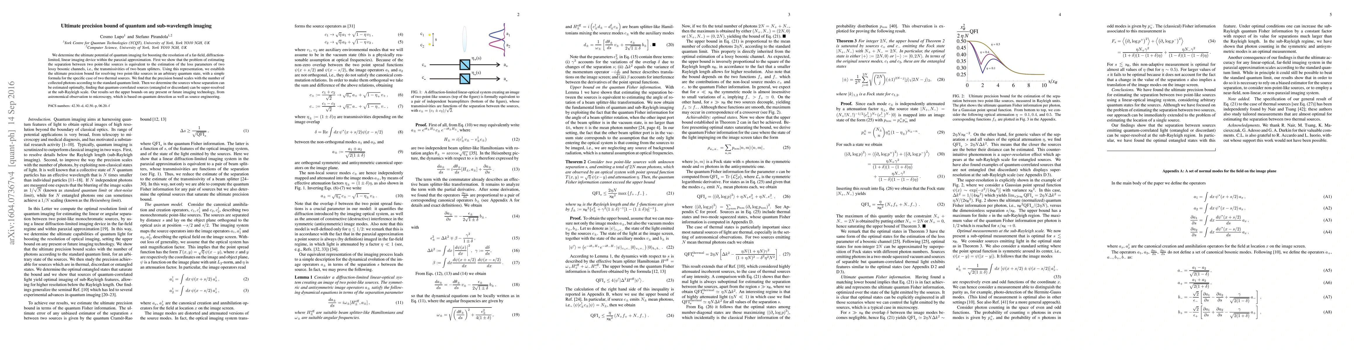 This paper establishes the ultimate precision limits for quantum imaging in resolving two point-like sources, demonstrating that quantum-correlated sources can be super-resolved below the Rayleigh limit, setting new bounds for quantum detection-based imaging technologies.