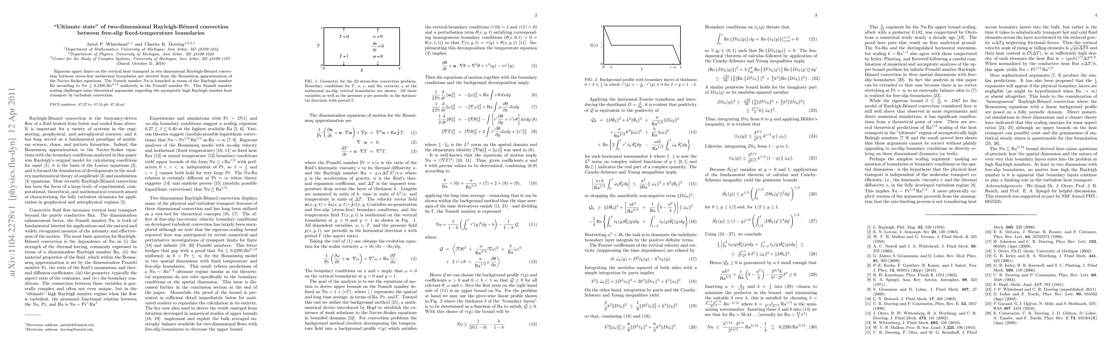 This paper derives rigorous upper limits for vertical heat transport in two-dimensional Rayleigh-Benard convection, showing that $Nu \leq 0.2295 Ra^{5/12}$ regardless of the Prandtl number, challenging existing theories on high Rayleigh number turbulent convection heat transport.