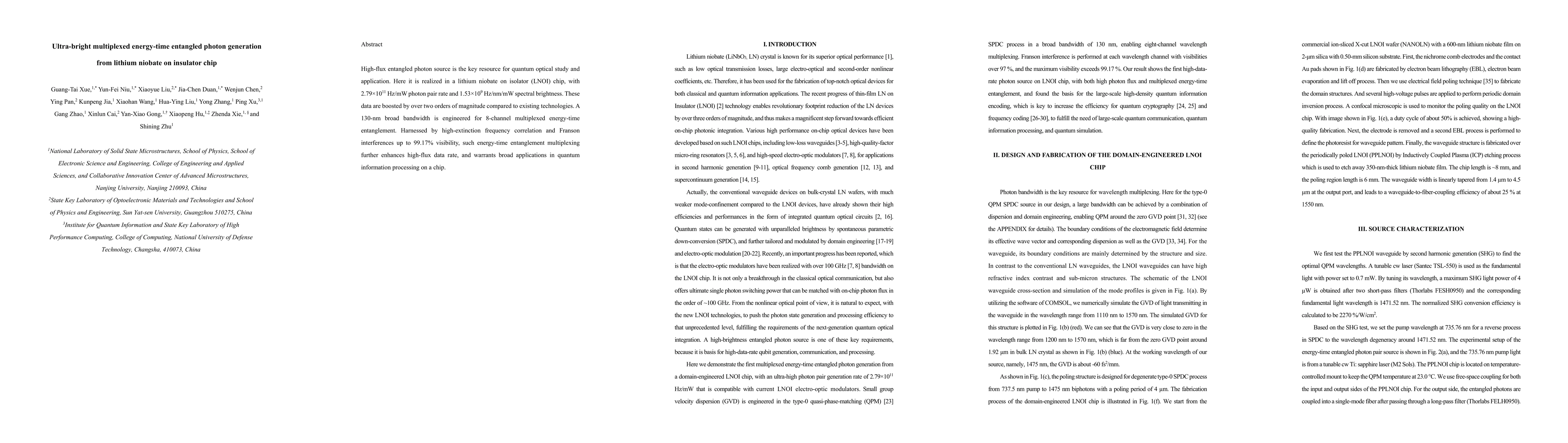 This paper presents an ultra-bright entangled photon source on a lithium niobate on insulator chip, achieving a photon pair rate of 2.79*10^11 Hz/mW and spectral brightness of 1.53*10^9 Hz/nm/mW, significantly surpassing existing technologies. The chip supports 8-channel multiplexed energy-time entanglement, enhancing high-flux data rates for quantum information processing applications.