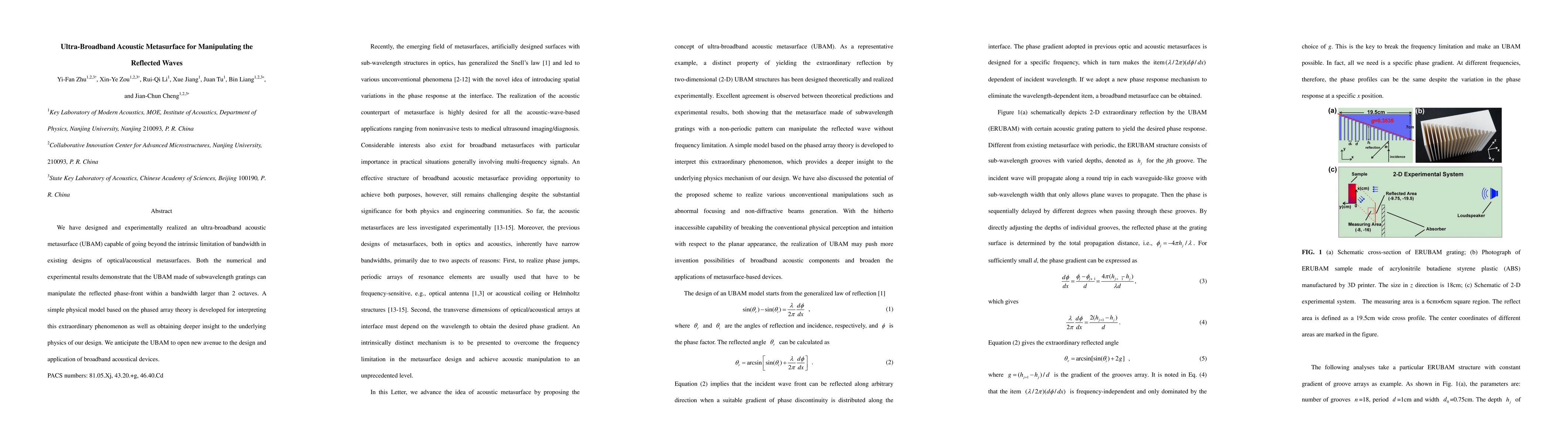 An ultra-broadband acoustic metasurface (UBAM) has been designed to manipulate reflected waves over more than 2 octaves, overcoming limitations of existing designs. A simple physical model explains the broad bandwidth performance based on phased array theory, promising new applications in broadband acoustic devices.
