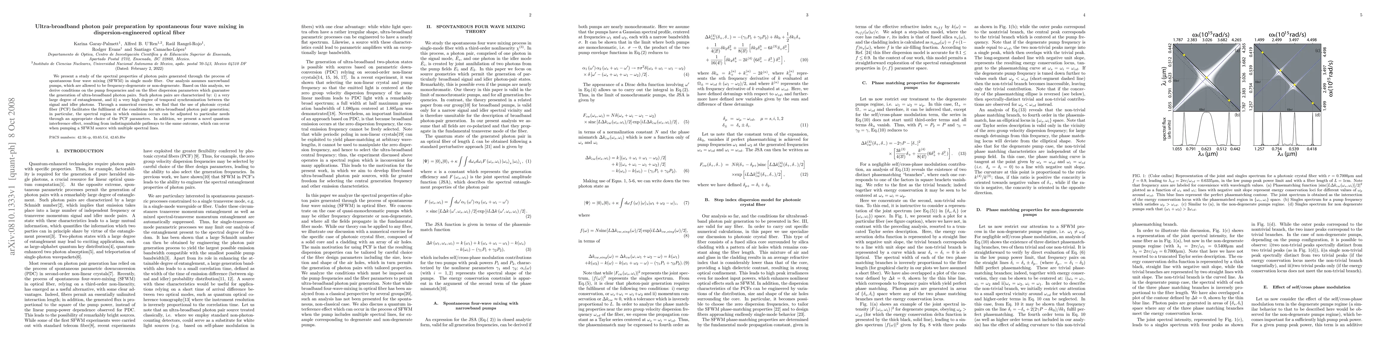 This paper investigates the generation of ultra-broadband photon pairs via spontaneous four wave mixing in dispersion-engineered optical fibers, particularly photonic crystal fiber, achieving high entanglement and temporal synchronization. The study also introduces a novel quantum interference effect from multiple spectral pump lines.