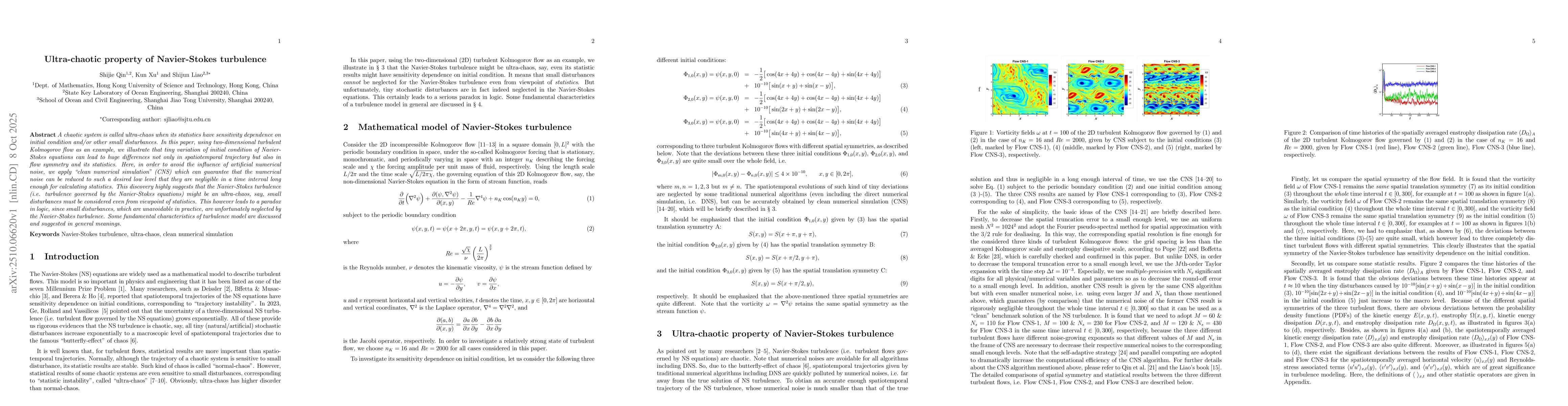 First to demonstrate that Navier-Stokes turbulence exhibits ultra-chaotic behavior, where statistical properties are sensitive to tiny initial disturbances, suggesting fundamental revisions to turbulence modeling paradigms.