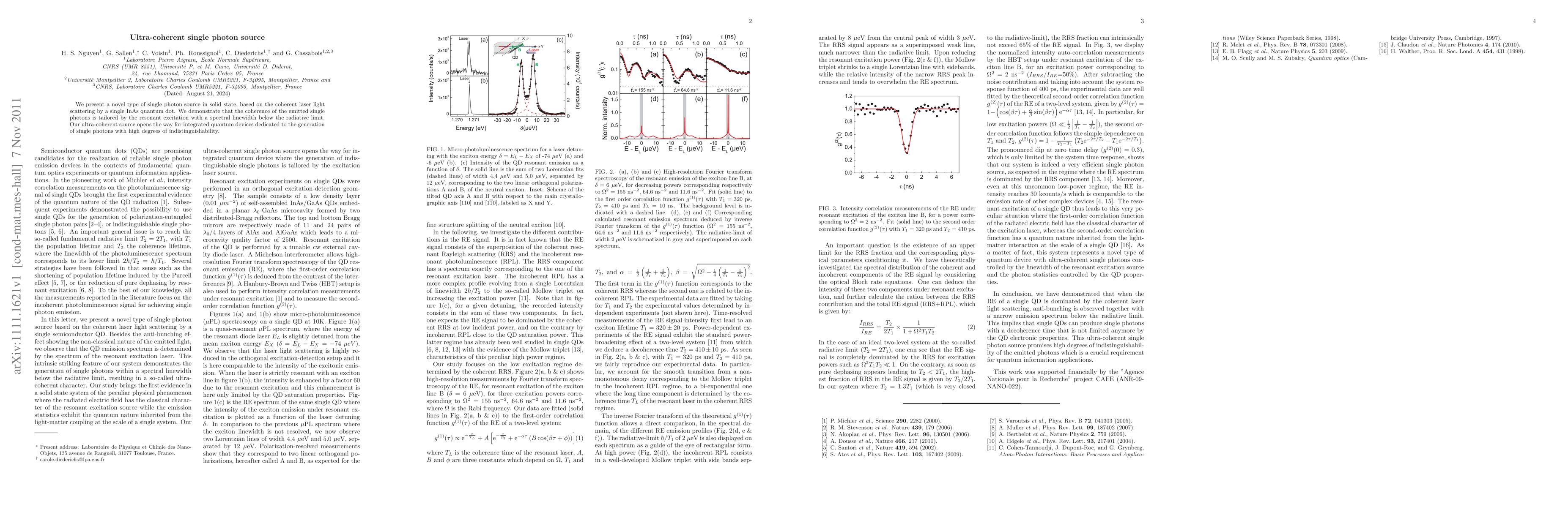 This paper introduces a novel solid-state single photon source based on coherent laser light scattering from a single InAs quantum dot, achieving ultra-high coherence below the radiative limit. The ultra-coherent source is poised to enable advanced integrated quantum devices for generating highly indistinguishable single photons.