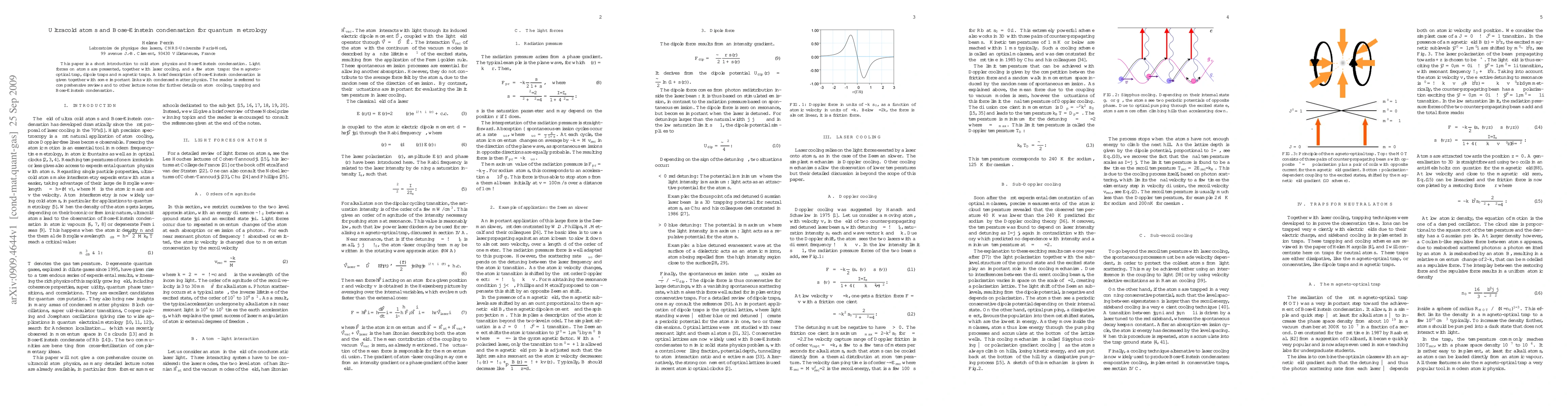This paper provides a concise introduction to cold atom physics, detailing laser cooling methods and various atom traps, followed by a brief overview of Bose-Einstein condensation and its relevance to quantum metrology. For in-depth information, readers are directed to additional reviews and lecture notes.