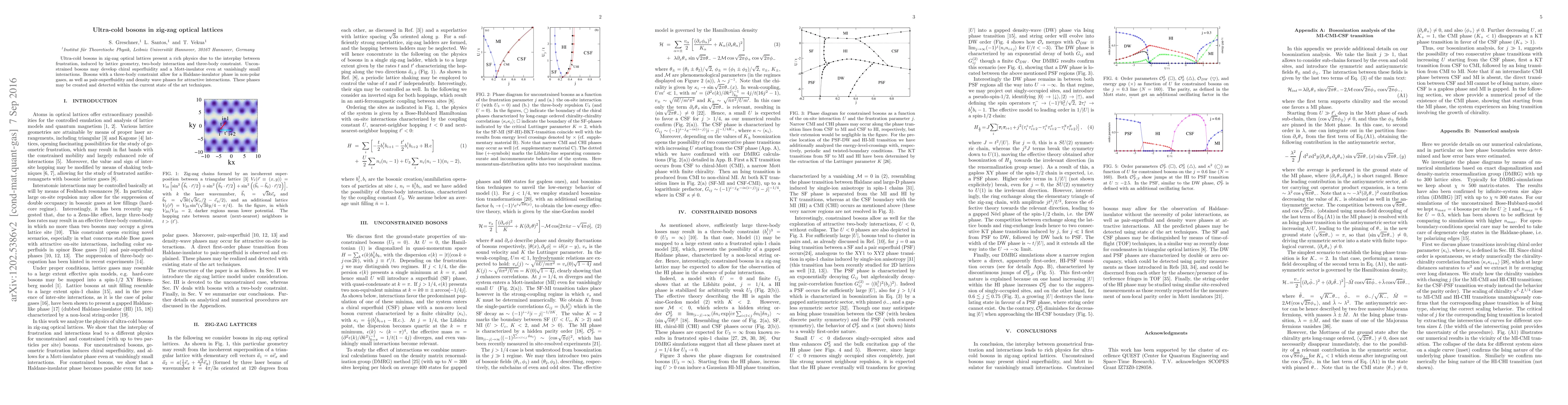 The paper presents a comprehensive theoretical analysis of ultra-cold bosons in zig-zag optical lattices, predicting various phases and their transitions, supported by numerical simulations and bosonization techniques.