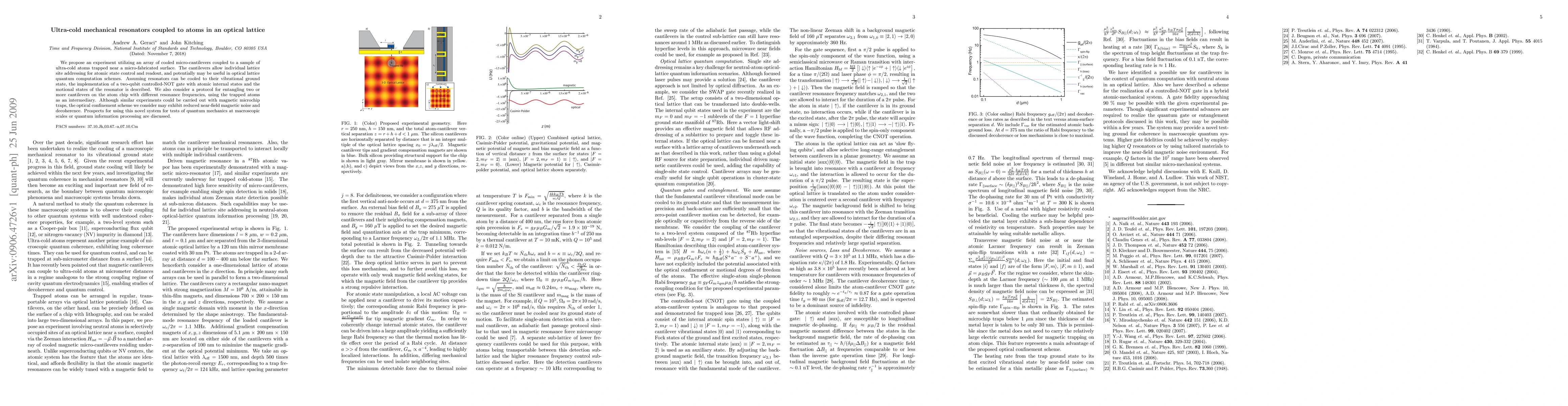 We propose an experiment utilizing an array of cooled micro-cantilevers coupled to a sample of ultra-cold atoms trapped near a micro-fabricated surface. The cantilevers allow individual lattice site addressing for atomic state control and readout, and potentially may be useful in optical lattice quantum computation schemes. Assuming resonators can be cooled to their vibrational ground state, the implementation of a two-qubit controlled-NOT gate with atomic internal states and the motional states of the resonator is described. We also consider a protocol for entangling two or more cantilevers on the atom chip with different resonance frequencies, using the trapped atoms as an intermediary. Although similar experiments could be carried out with magnetic microchip traps, the optical confinement scheme we consider may exhibit reduced near-field magnetic noise and decoherence. Prospects for using this novel system for tests of quantum mechanics at macroscopic scales or quantum information processing are discussed.