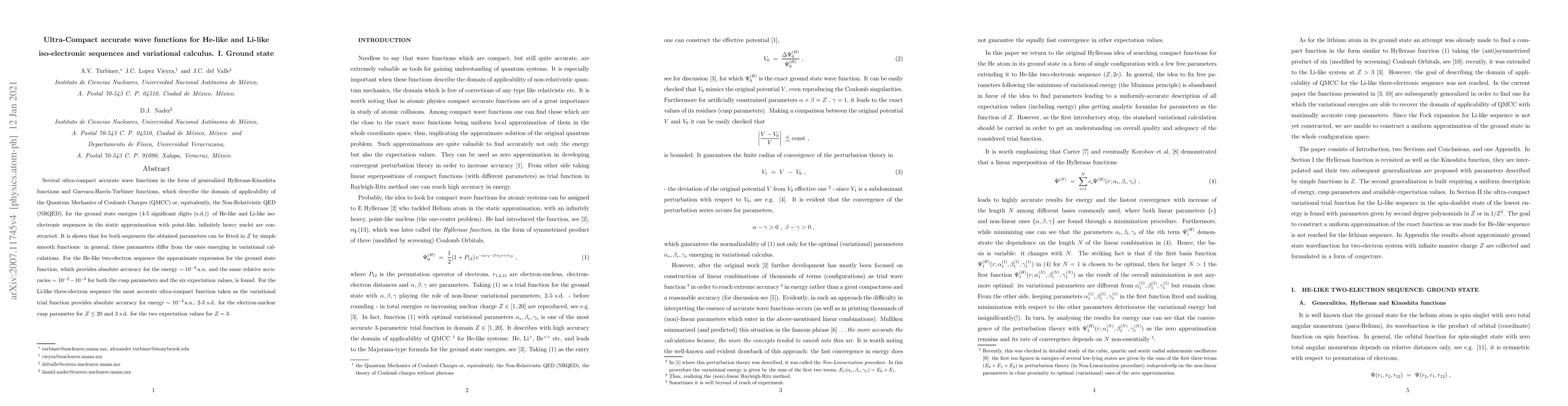 This paper constructs ultra-compact wave functions for He-like and Li-like iso-electronic sequences, achieving ground state energies with 4-5 significant digits. The derived parameters differ from those in variational calculations and provide high accuracy for energy, cusp parameters, and expectation values.