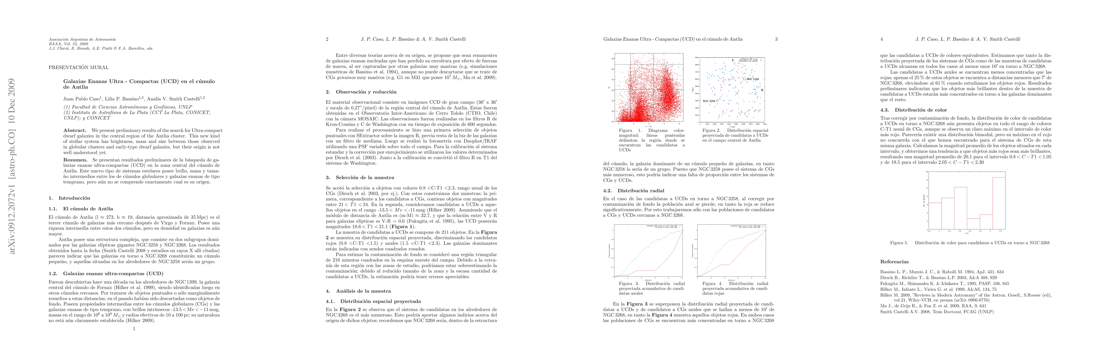 We present preliminary results of the search for Ultra-compact dwarf galaxies in the central region of the Antlia cluster. This new kind of stellar system has brightness, mass and size between those observed in globular clusters and early-type dwarf galaxies, but their origin is not well understood yet.