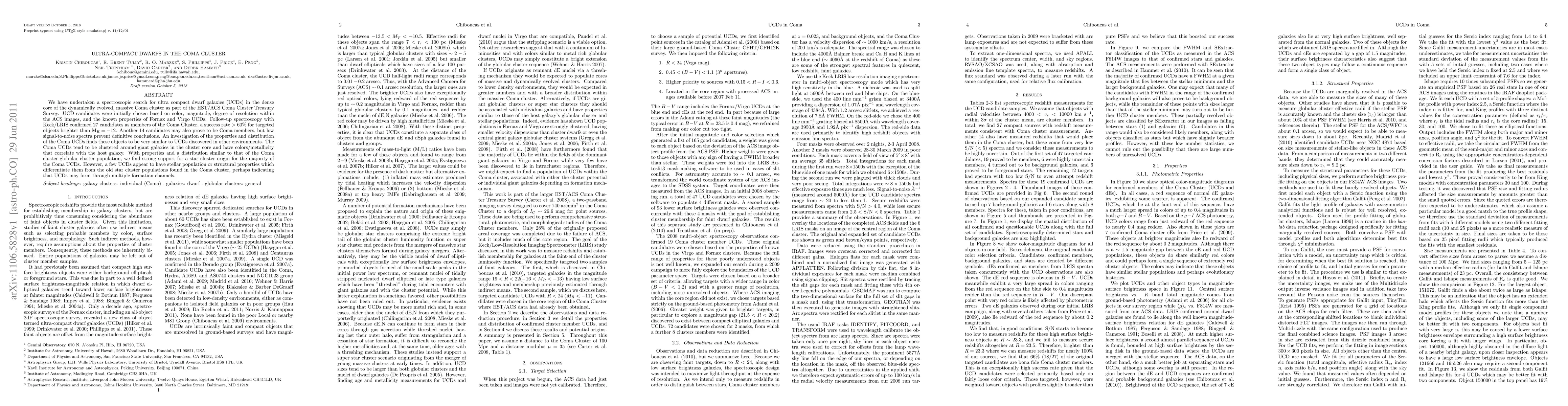 This study identifies and analyzes ultra-compact dwarf galaxies (UCDs) in the Coma Cluster using HST/ACS and Keck/LRIS data, confirming 27 UCDs as Coma Cluster members. The UCDs exhibit properties similar to those in other environments, supporting their origin as star clusters, though some show distinct characteristics suggesting diverse formation pathways.