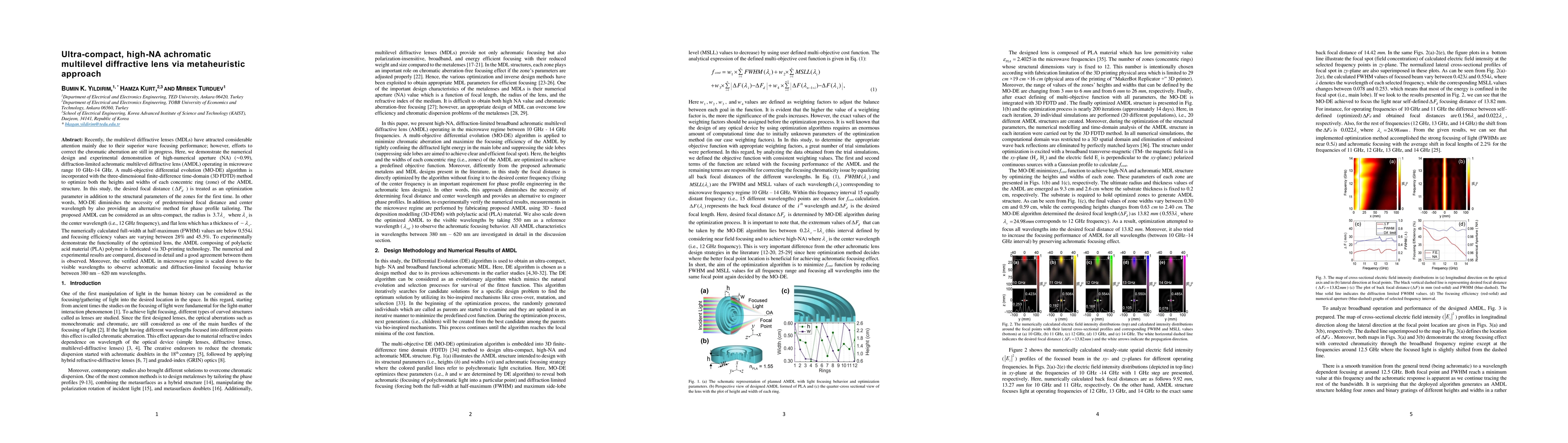 This paper presents the design and experimental validation of an ultra-compact, high-NA achromatic multilevel diffractive lens using a metaheuristic optimization approach. The lens demonstrates diffraction-limited performance in the microwave range, with a radius of 3.7λc and thickness of λc, and is experimentally fabricated using 3D-printing technology.
