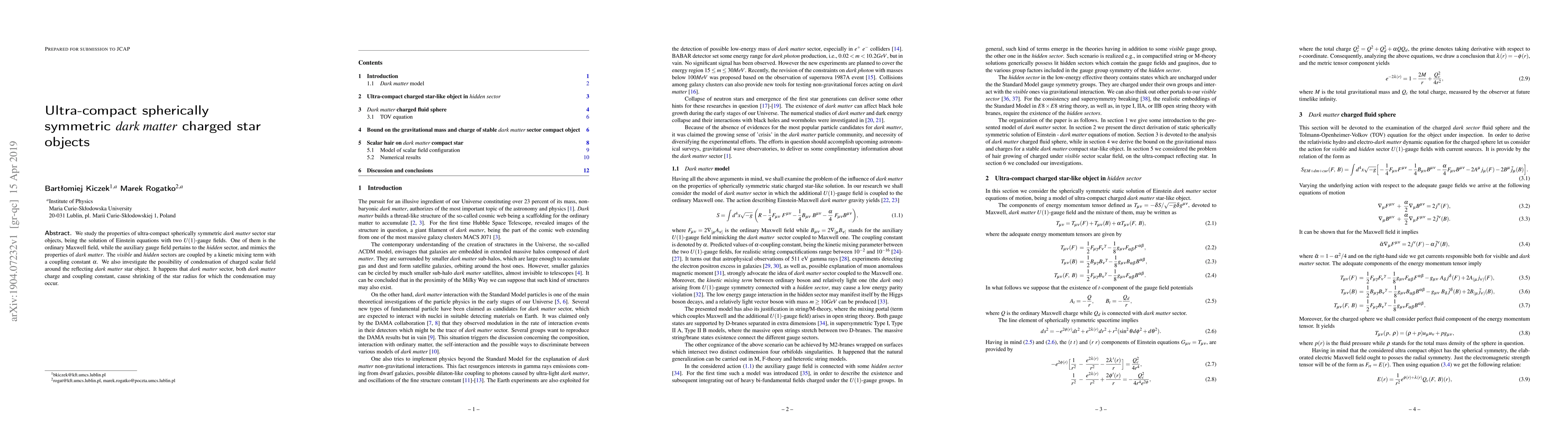 We study the properties of ultra-compact spherically symmetric dark matter sector star objects, being the solution of Einstein equations with two $U(1)$-gauge fields. One of them is the ordinary Maxwell field, while the auxiliary gauge field pertains to the hidden sector, and mimics the properties of dark matter. The visible and hidden sectors are coupled by a kinetic mixing term with a coupling constant $\alpha$. We also investigate the possibility of condensation of charged scalar field around the reflecting dark matter star object. It happens that dark matter sector, both dark matter charge and coupling constant, cause shrinking of the star radius for which the condensation may occur.