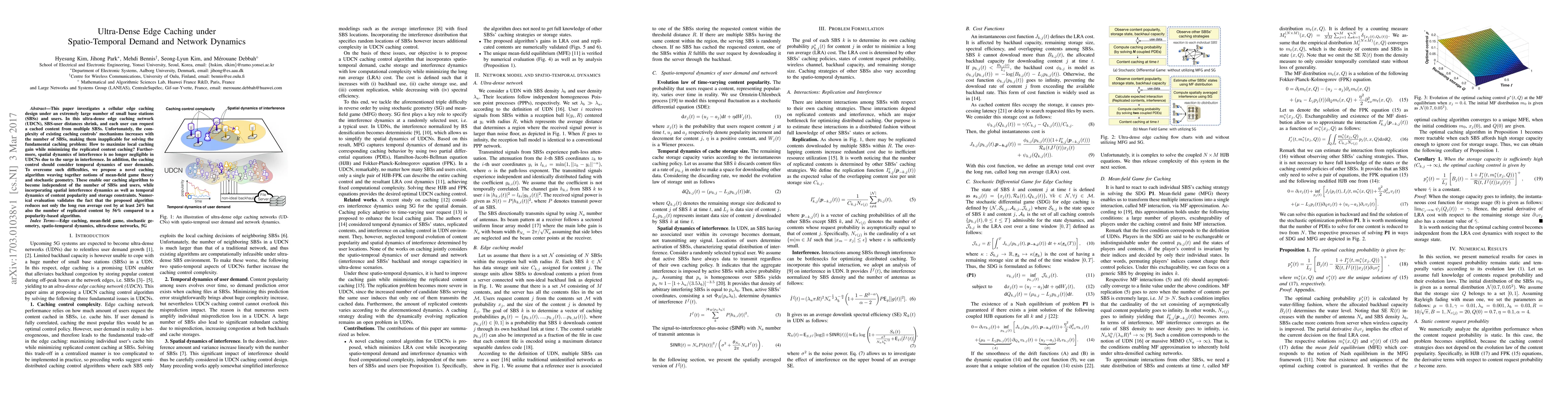 This paper proposes a novel caching algorithm for ultra-dense edge networks, leveraging mean-field game theory and stochastic geometry to maximize local caching gain while minimizing replicated content, addressing both spatial interference and temporal demand dynamics. The proposed method significantly reduces average costs and replicated content compared to traditional popularity-based algorithms.