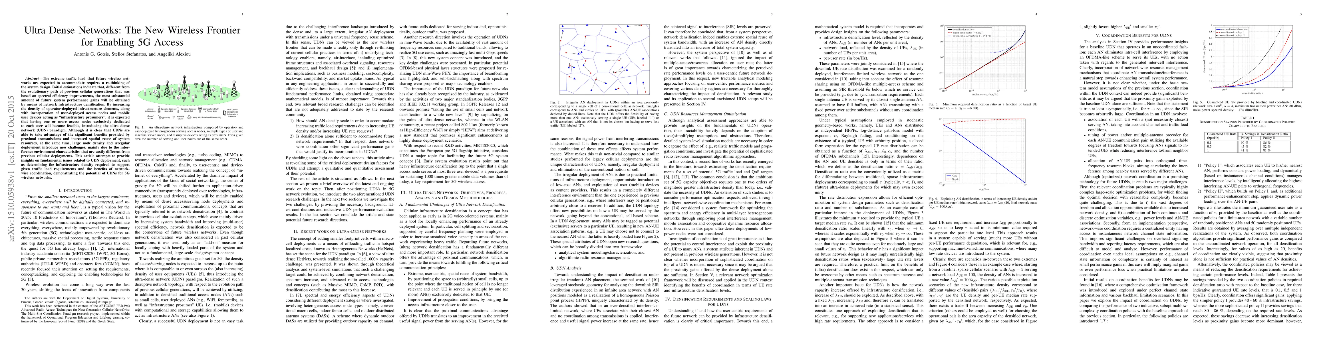 This paper explores the ultra dense network (UDN) paradigm for enabling 5G access, emphasizing the need for increased infrastructure density to handle future traffic loads. It highlights the benefits of proximal transmissions and spatial resource reuse, while also addressing the challenges of interference management in highly dense and irregular network deployments.