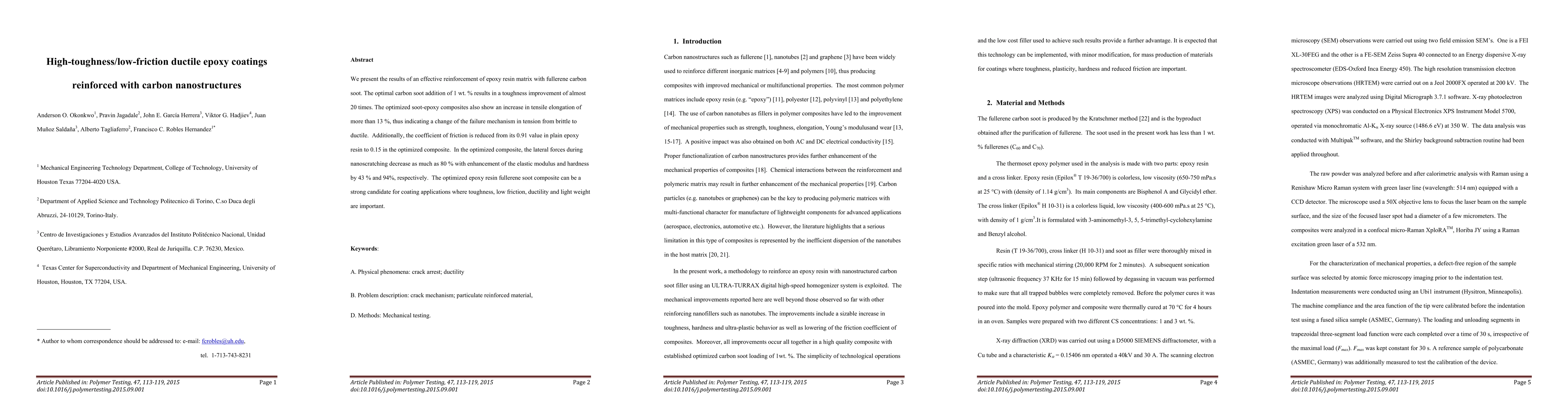 This study enhances the toughness and ductility of epoxy resin matrix composites by adding 1 wt. % fullerene carbon soot, resulting in a 20-fold increase in toughness and a 13% rise in tensile elongation. The optimized composite also exhibits a significant reduction in friction and improved mechanical properties.
