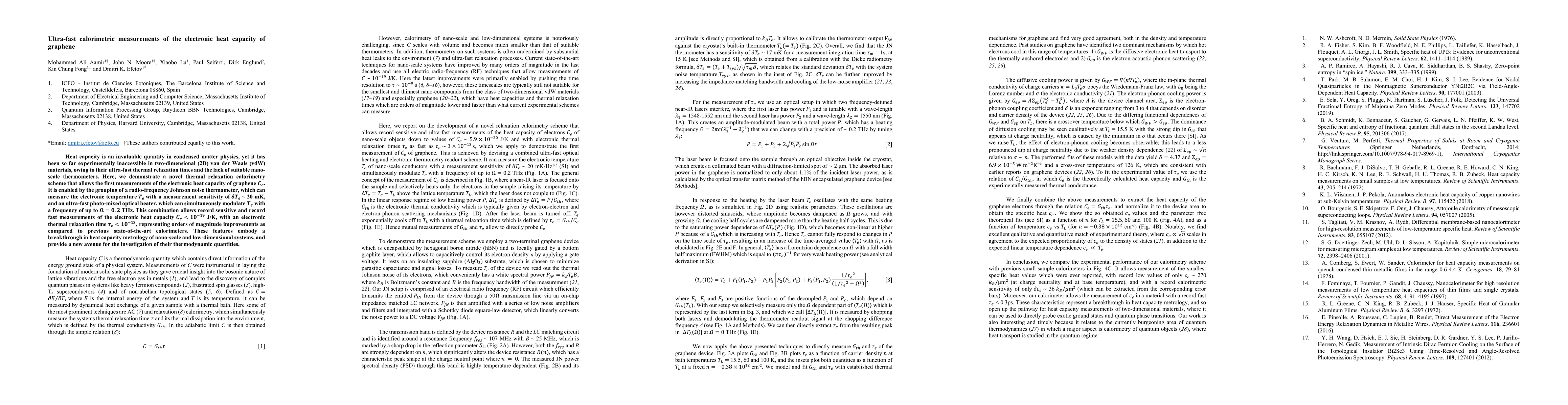 This paper presents a novel thermal relaxation calorimetry method for measuring the electronic heat capacity of graphene, utilizing a radio-frequency Johnson noise thermometer and an ultra-fast photo-mixed optical heater, achieving unprecedented sensitivity and speed. The method enables record-fast measurements of graphene's electronic heat capacity, marking a significant advancement in the study of thermodynamic properties of nano-scale materials.