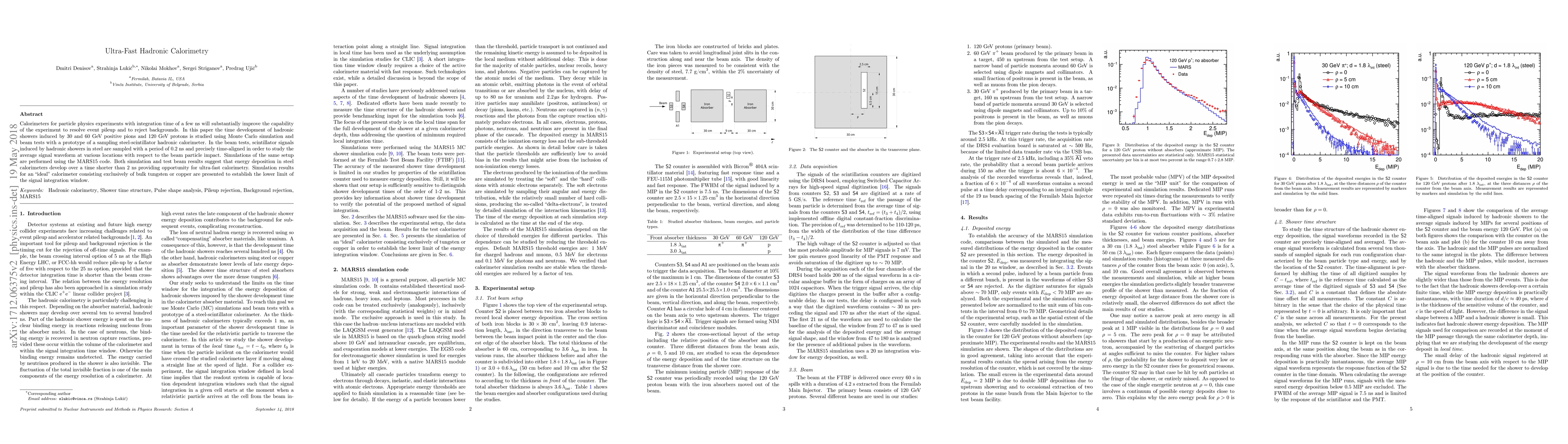 Calorimeters for particle physics experiments with integration time of a few ns will substantially improve the capability of the experiment to resolve event pileup and to reject backgrounds. In this paper the time development of hadronic showers induced by 30 and 60 GeV positive pions and 120 GeV protons is studied using Monte Carlo simulation and beam tests with a prototype of a sampling steel-scintillator hadronic calorimeter. In the beam tests, scintillator signals induced by hadronic showers in steel are sampled with a period of 0.2 ns and precisely time-aligned in order to study the average signal waveform at various locations with respect to the beam particle impact. Simulations of the same setup are performed using the MARS15 code. Both simulation and test beam results suggest that energy deposition in steel calorimeters develop over a time shorter than 2 ns providing opportunity for ultra-fast calorimetry. Simulation results for an "ideal" calorimeter consisting exclusively of bulk tungsten or copper are presented to establish the lower limit of the signal integration window.