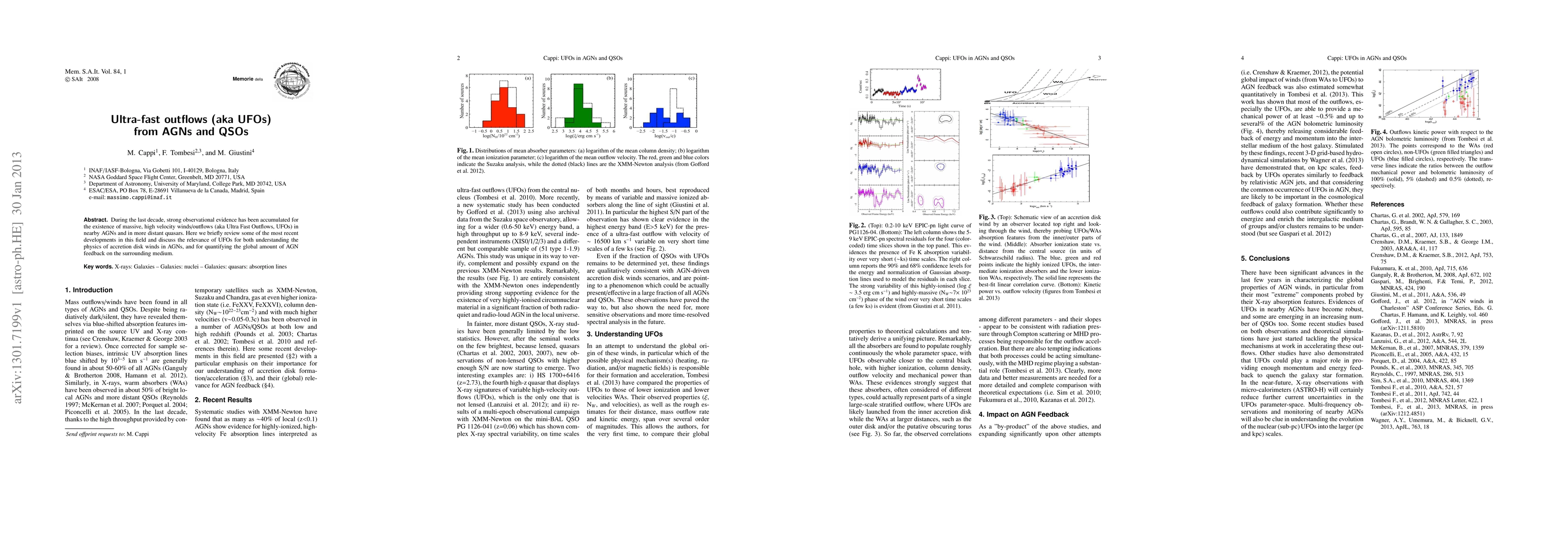 The paper reviews the recent developments in the observation of massive, high-velocity winds (Ultra Fast Outflows or UFOs) from Active Galactic Nuclei (AGNs) and quasars. It highlights their significance in understanding accretion disk wind physics and quantifying AGN feedback impact on surrounding media.