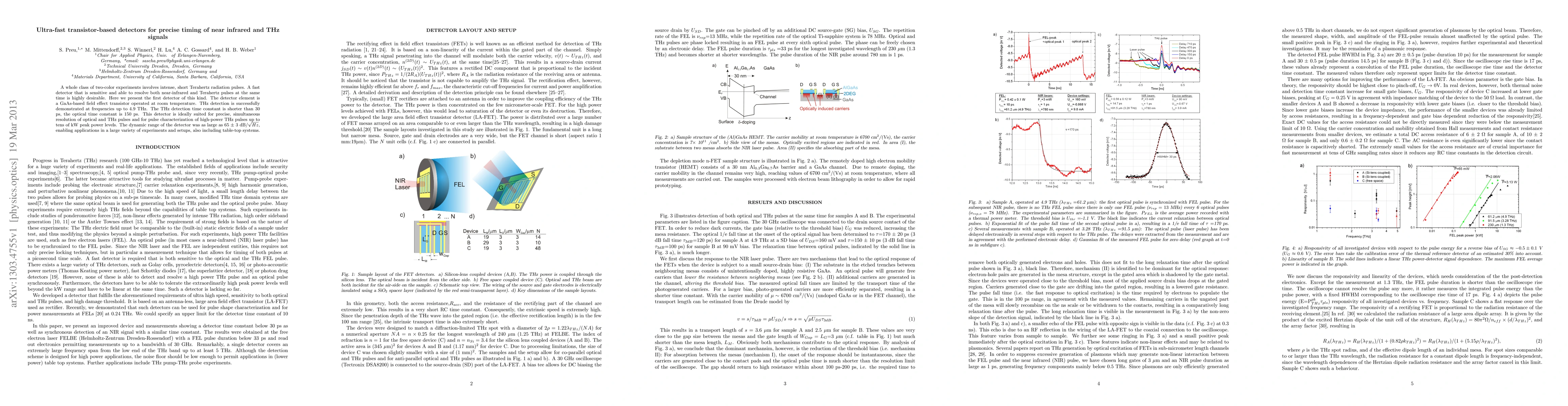 This paper introduces a novel GaAs-based field effect transistor detector capable of precisely timing both near-infrared and Terahertz signals, with a THz detection time constant under 30 ps and a dynamic range of 65 ± 3 dB/$\sqrt{Hz}$. Ideal for simultaneous resolution of optical and THz pulses, it supports high-power THz pulse characterization.