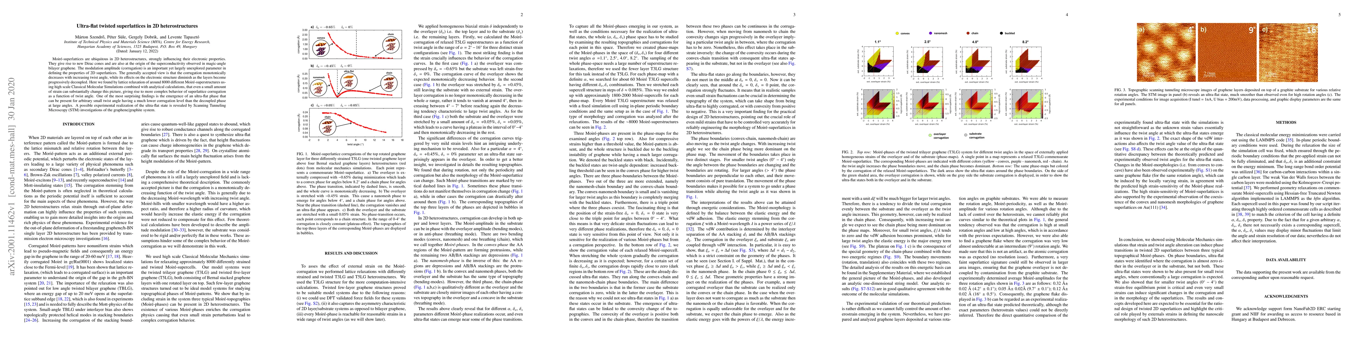 This paper explores the electronic properties of Moir\'e-superlattices in 2D heterostructures, revealing that small amounts of strain can lead to an ultra-flat phase with lower corrugation than previously thought, challenging the conventional view that corrugation decreases with increasing twist angle. This finding is supported by lattice relaxation simulations and Scanning Tunneling Microscopy investigations.