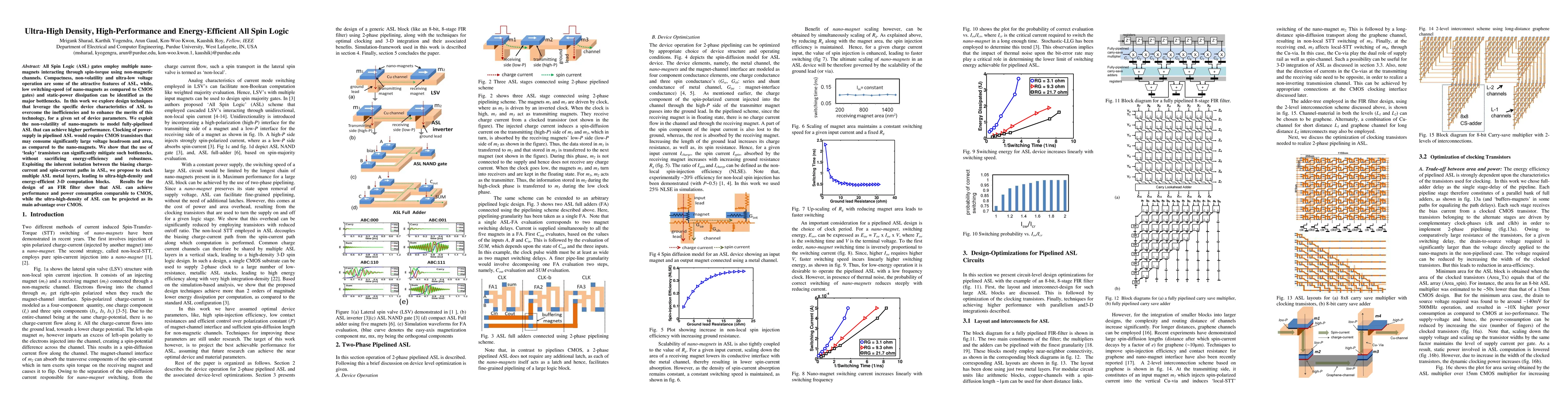 This paper explores design techniques to enhance the performance, density, and energy efficiency of All Spin Logic (ASL) by leveraging its non-volatile nano-magnets and proposing a fully-pipelined stackable 3-D architecture using leaky transistors to mitigate power consumption issues. The proposed ASL design achieves comparable performance and power to CMOS, with ultra-high-density as its main advantage.
