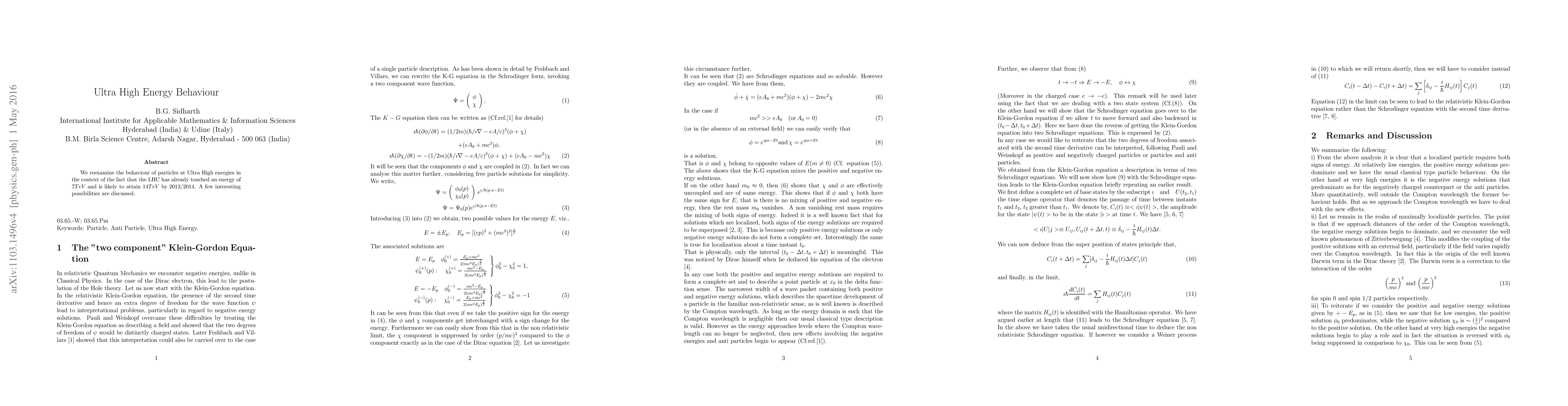 We reexamine the behaviour of particles at Ultra Highe energies in the context of the fact that the LHC has already touched an energy of $7 TeV$ and is likely to attain $14 TeV$ by 2013/2014.Consequences like a possible new shortlived interaction within the Compton scale are discussed.