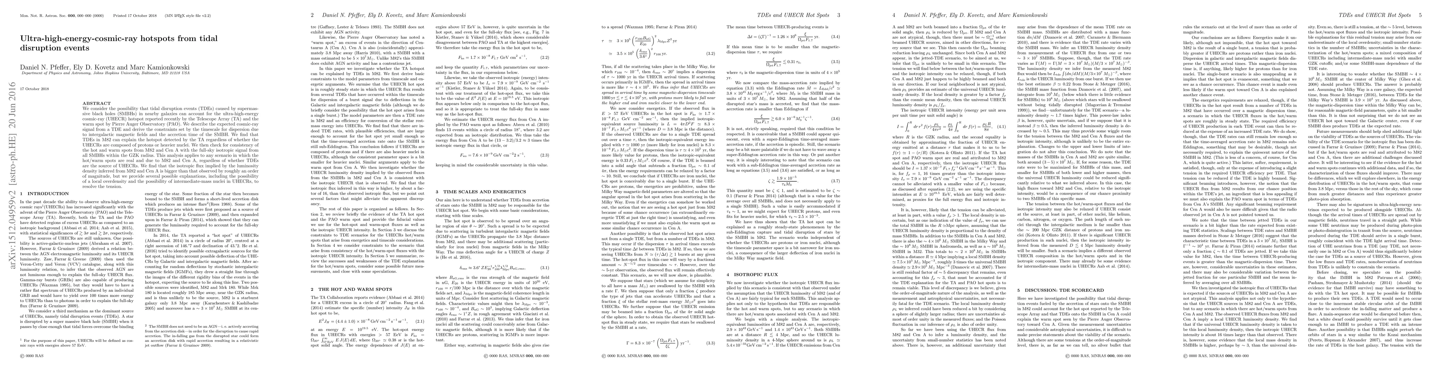 We consider the possibility that tidal disruption events (TDEs) caused by supermassive black holes (SMBHs) in nearby galaxies can account for the ultra-high-energy cosmic-ray (UHECR) hotspot reported recently by the Telescope Array (TA) and the warm spot by Pierre Auger Observatory (PAO). We describe the expected cosmic-ray signal from a TDE and derive the constraints set by the timescale for dispersion due to intergalactic magnetic fields and the accretion time of the SMBH. We find that TDEs in M82 can explain the hotspot detected by the TA regardless of whether the UHECRs are composed of protons or heavier nuclei. We then check for consistency of the hot and warm spots from M82 and Cen A with the full-sky isotropic signal from all SMBHs within the GZK radius. This analysis applies to any scenario in which the hot/warm spots are real and due to M82 and Cen A, regardless of whether TDEs are the source of UHECRs. We find that the isotropic flux implied by the luminosity density inferred from M82 and Cen A is bigger than that observed by roughly an order of magnitude, but we provide several possible explanations, including the possibility of a local overdensity and the possibility of intermediate-mass nuclei in UHECRs, to resolve the tension.
