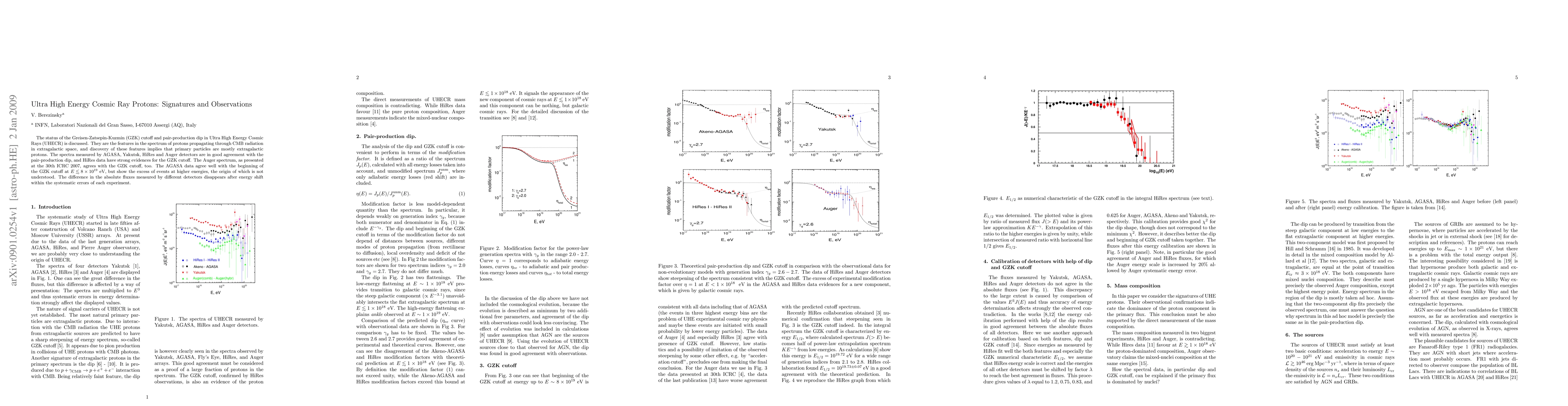 This paper discusses the Greisen-Zatsepin-Kuzmin (GZK) cutoff and pair-production dip in Ultra High Energy Cosmic Ray (UHECR) protons, indicating that these features support the hypothesis of extragalactic origins. The findings from AGASA, Yakutsk, HiRes, and Auger detectors align well with these spectral features, though AGASA shows an unexplained excess at higher energies.