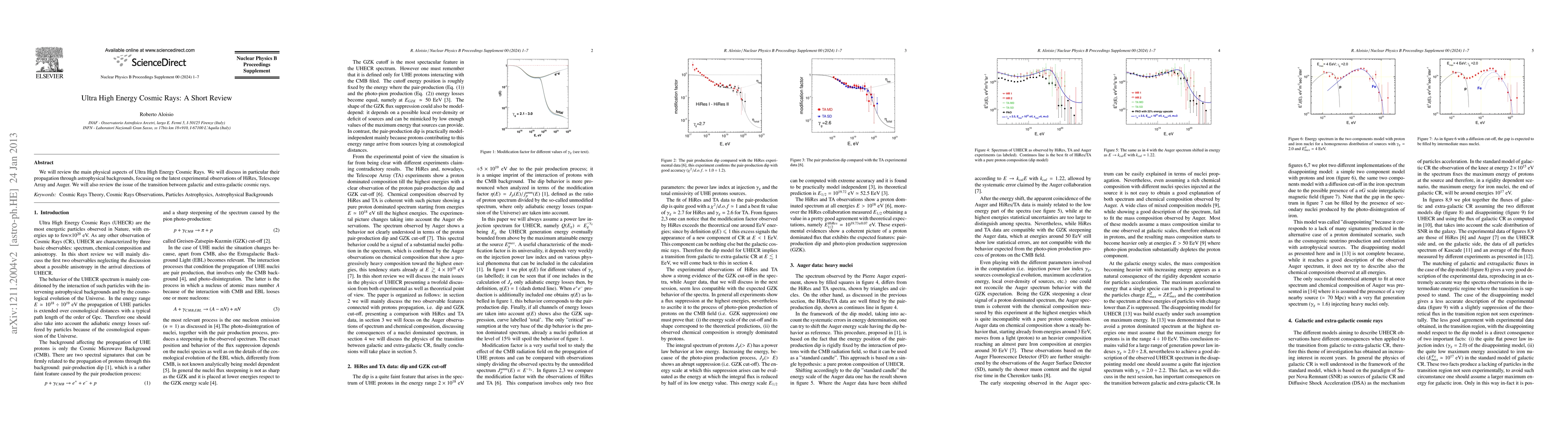 This paper reviews the fundamental physics of Ultra High Energy Cosmic Rays, emphasizing their propagation through astrophysical backgrounds and highlighting recent experimental findings from HiRes, Telescope Array, and Auger. It also addresses the transition between galactic and extra-galactic cosmic rays.