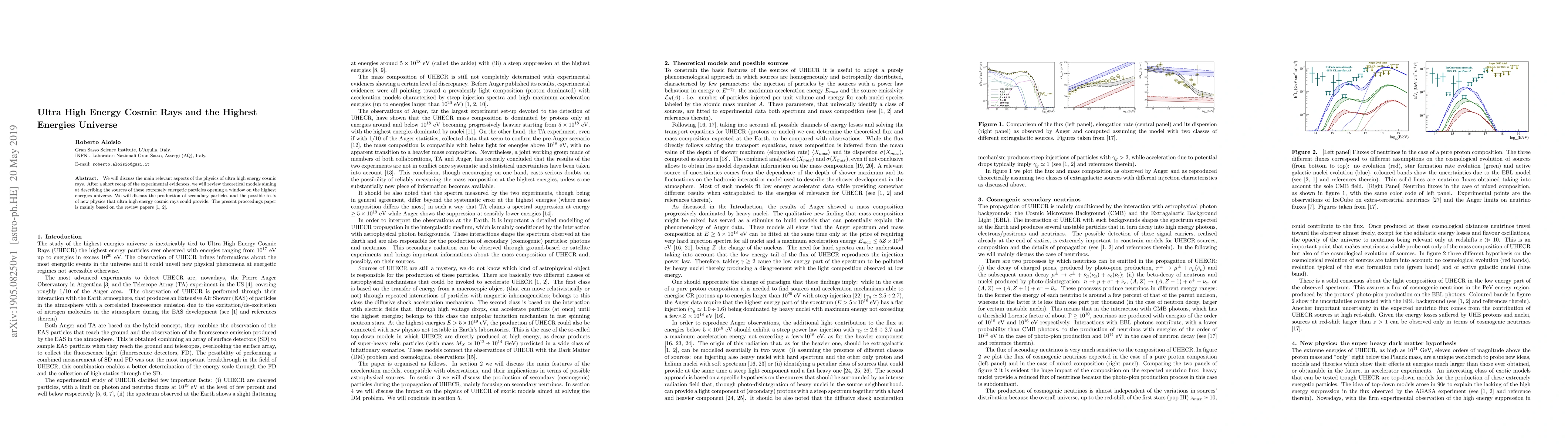 This paper reviews the experimental evidence and theoretical models for ultra high energy cosmic rays, exploring their sources and the insights they offer into the highest energy phenomena in the universe. It also examines the production of secondary particles and potential tests of new physics enabled by these cosmic rays.