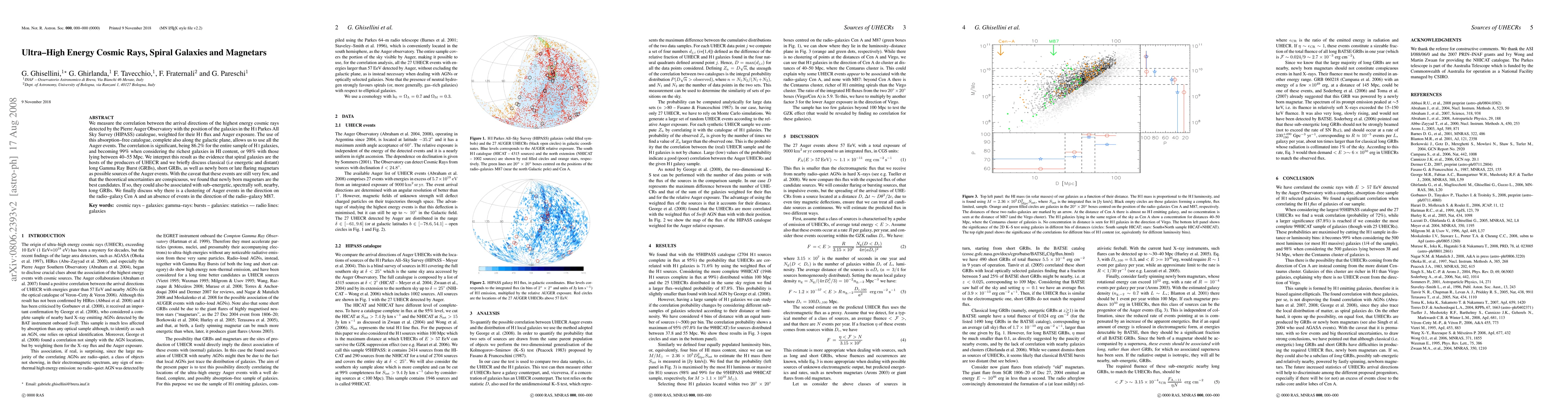 We measure the correlation between the arrival directions of the highest energy cosmic rays detected by the Pierre Auger Observatory with the position of the galaxies in the HI Parkes All Sky Survey (HIPASS) catalogue, weighted for their HI flux and Auger exposure. The use of this absorption-free catalogue, complete also along the galactic plane, allows us to use all the Auger events. The correlation is significant, being 86.2% for the entire sample of HI galaxies, and becoming 99% when considering the richest galaxies in HI content, or 98% with those lying between 40-55. We interpret this result as the evidence that spiral galaxies are the hosts of the producers of UHECR and we briefly discuss classical (i.e energetic and distant) long Gamma Ray Burst (GRBs), short GRBs, as well as newly born or late flaring magnetars as possible sources of the Auger events. With the caveat that these events are still very few, and that the theoretical uncertainties are conspicuous, we found that newly born magnetars are the best candidates. If so, they could also be associated with sub-energetic, spectrally soft, nearby, long GRBs. We finally discuss why there is a clustering of Auger events in the direction on the radio-galaxy Cen A and an absence of events in the direction of the radio-galaxy M87.