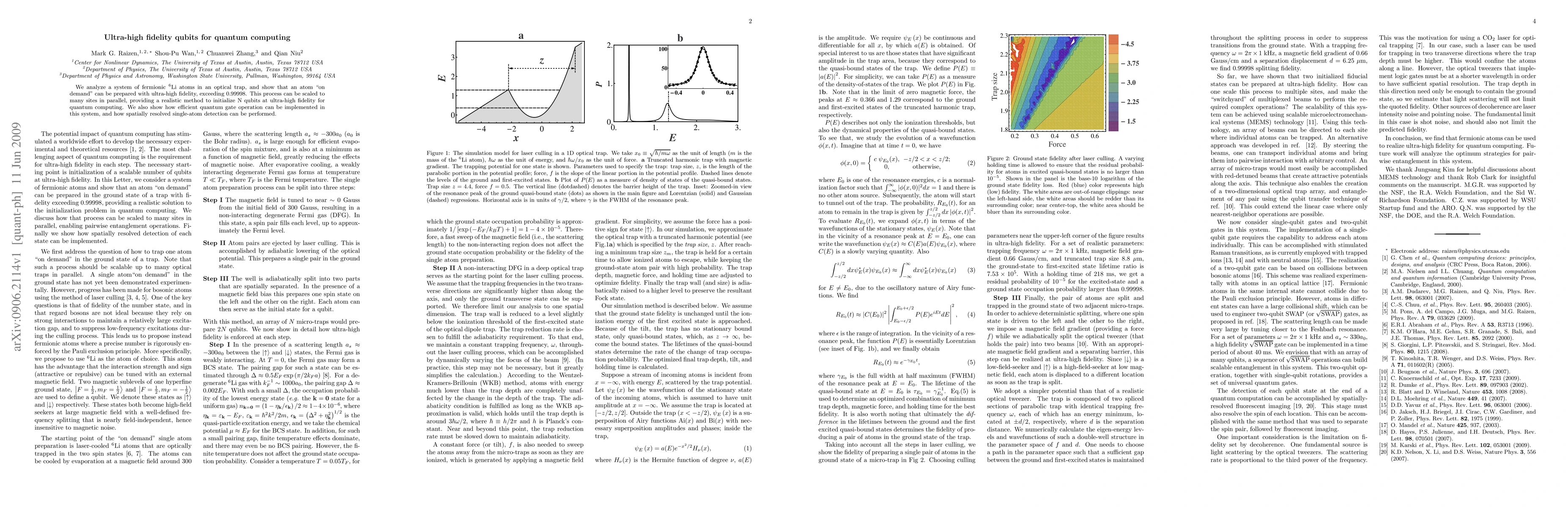 We analyze a system of fermionic $^{6}$Li atoms in an optical trap, and show that an atom "on demand" can be prepared with ultra-high fidelity, exceeding 0.99998. This process can be scaled to many sites in parallel, providing a realistic method to initialize N qubits at ultra-high fidelity for quantum computing. We also show how efficient quantum gate operation can be implemented in this system, and how spatially resolved single-atom detection can be performed.