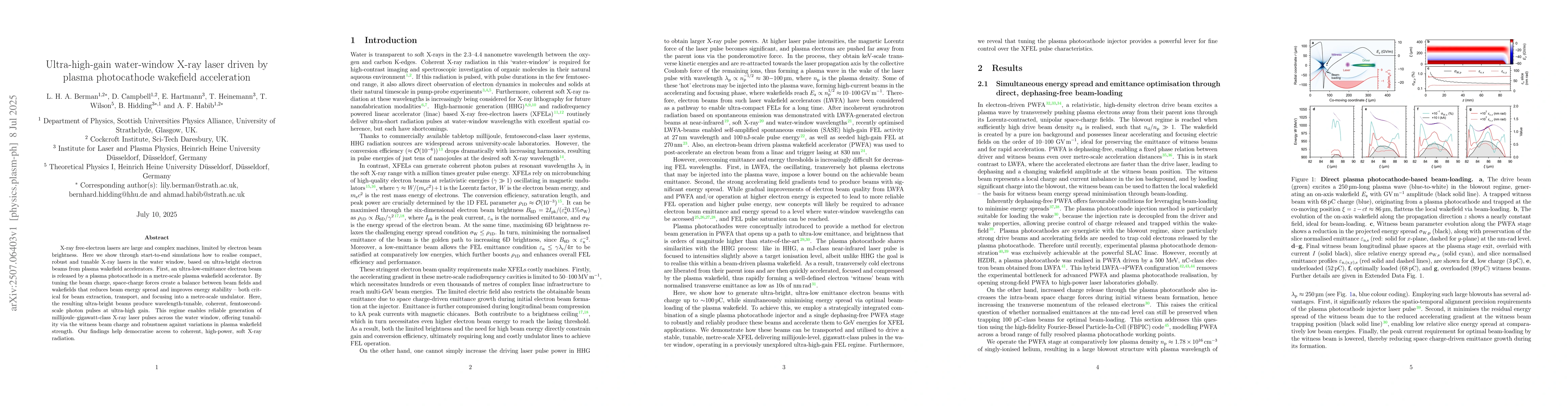 This research presents a method using plasma wakefield accelerators to create compact, tunable X-ray lasers in the water window, overcoming limitations of traditional X-ray free-electron lasers. The technique involves generating ultra-low-emittance electron beams with a plasma photocathode, balancing space-charge forces to reduce energy spread, and focusing these beams into an undulator for coherent, femtosecond scale photon pulses at ultra-high gain. This approach enables the generation of powerful, tunable soft X-ray radiation in a more accessible and robust format.